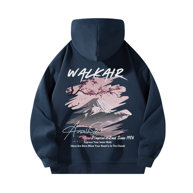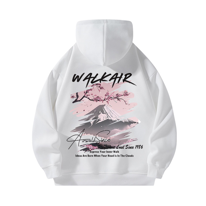 这款复古樱花富士山印花连帽卫衣,融合日式美学与美式高街风格,男女同款,宽松百搭。衣身采用优质棉质面料,亲肤透气,穿着舒适。胸前及背后大面积印制复古色调的樱花与富士山图案,意境唯美又不失潮流感,尽显文艺街头范儿。经典连帽设计搭配抽绳调节,实用又时尚。落肩袖剪裁增强廓形感,轻松打造慵懒随性的高街造型。无论是搭配牛仔裤、工装裤还是骑行裤,都能轻松驾驭多种风格,是春日出行的必备单品,兼顾个性表达与日常实穿性。