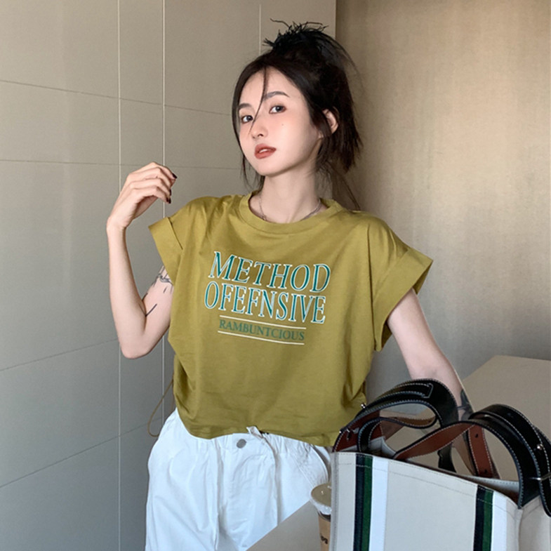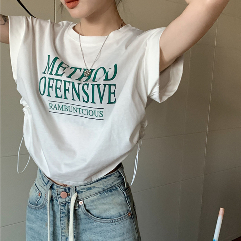 淘宝女夏配阔腿直筒裤高腰裤工装裤搭配的上衣嘻哈爵士舞短款露脐T恤