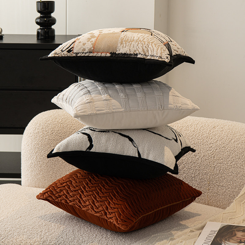 淘现代简约诧寂风黑白玫瑰轻奢客厅沙发抱枕装饰靠垫靠背枕套不含芯
