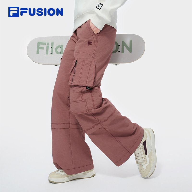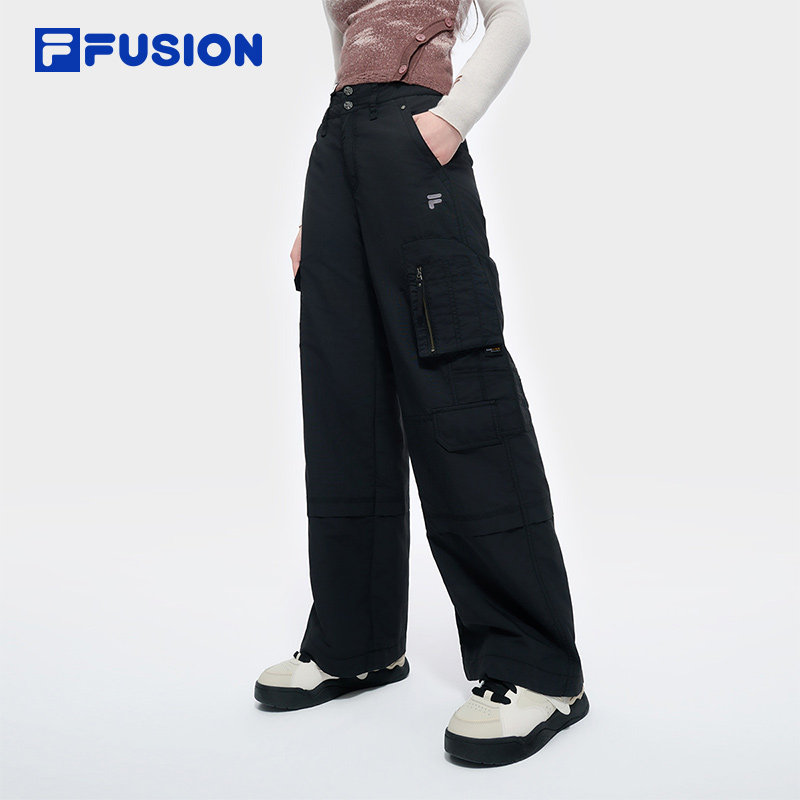 天猫FILA FUSION斐乐潮牌梭织长裤女2025春季新款时尚休闲宽松工装裤