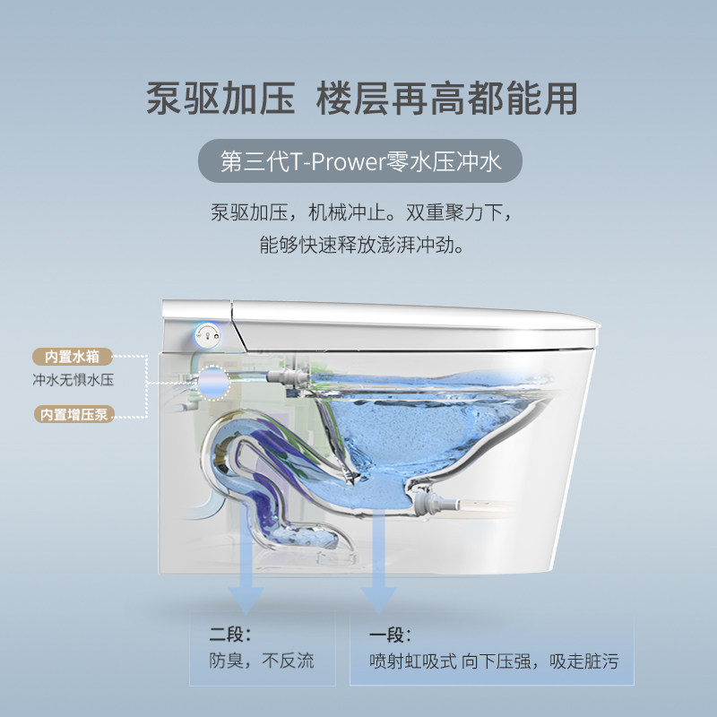 天猫特洁尔TE56壁挂智能马桶小户型墙排内置水箱多重防护电动坐便器