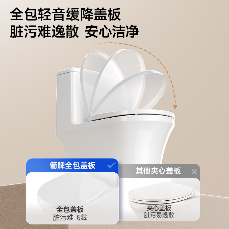 箭牌马桶家用旗舰正品,采用先进虹吸式冲水技术,强劲排污同时实现高效节水,符合国家一级水效标准。无棱内壁设计,光滑易洁,杜绝污垢残留,有效防臭抑菌。精准水封技术有效防止溅水,如厕更舒适安心。小巧紧凑的机身专为小户型优化,节省空间却不牺牲使用体验。精选优质陶瓷材质,坚固耐用,表面抗污易打理。静音缓降盖板,开合轻柔无声,提升居家品质。箭牌作为卫浴行业知名品牌,品质保障,售后服务完善,是家庭卫生间升级的理想之选。