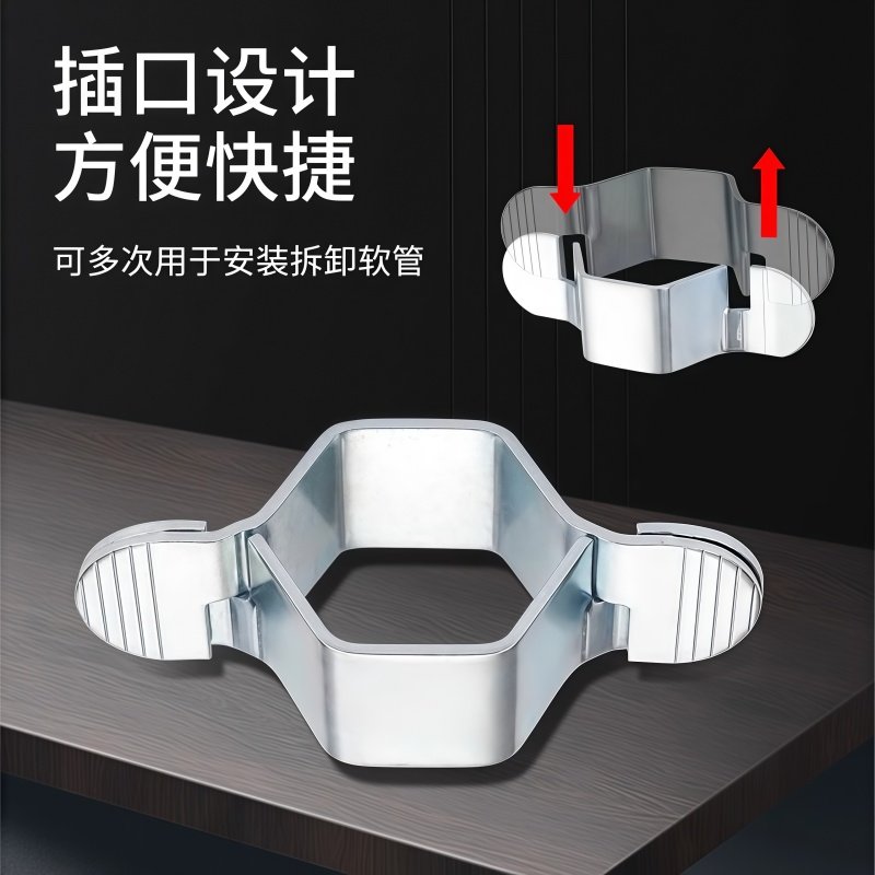 4分龙头进水软管扳手是一款专为家庭水路安装与维修设计的实用工具,适用于马桶角阀、厨房菜盆、面盆等常见卫浴和厨房设备的上水管连接。其独特设计可轻松拧紧或拆卸4分(DN15)规格的水管螺帽,有效避免传统扳手因空间狭小而操作困难的问题。采用高强度合金材质,防锈耐用,手柄防滑设计提升操作稳定性。配套可拆卸配件,适配多种接口,安装便捷,密封性强,有效防止漏水。无论是日常维护还是新装水路,这款扳手都能大幅提升工作效率,是家庭工具箱中不可或缺的实用配件,保障用水设备安全、稳定运行。