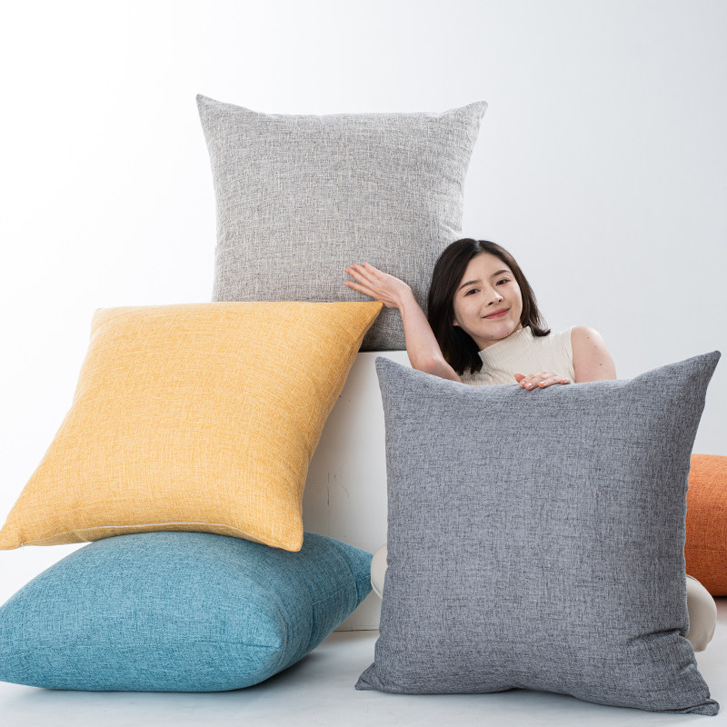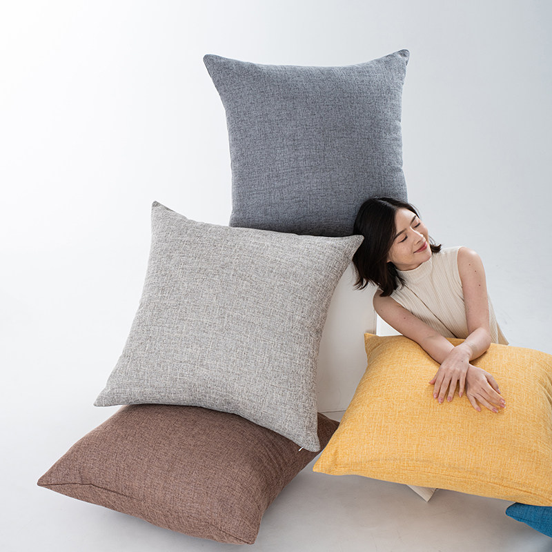 天猫简约纯色沙发靠枕客厅长方形亚麻抱枕靠垫民宿抱枕套不含芯大靠背