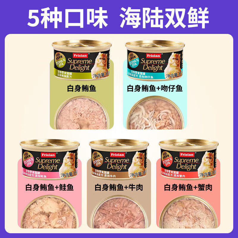 泰国进口富力鲜猫罐头,精选优质新鲜原料,采用先进工艺制作,富含高蛋白与丰富营养,专为成猫与幼猫设计。每罐质地细腻,口感鲜美,适口性极佳,既能作为主食提供全面均衡营养,也可作零食奖励增进人宠互动。特别添加牛磺酸、维生素及矿物质,助力猫咪健康成长、增强免疫力,同时有效补充水分,预防泌尿系统问题。24罐装整箱售卖,共48罐,性价比高,方便囤货。无人工添加剂,安全健康,是追求高品质养猫的优选。让爱宠享受泰国原产美味,实现增肥补水、强健体魄的理想效果。