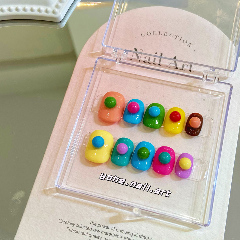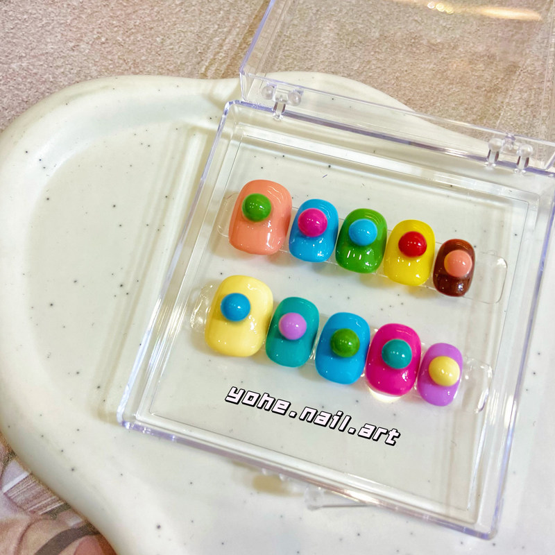 淘宝宥荷Studio 超可爱彩虹豆豆INS穿戴甲美甲定制假指甲光疗手工定制
