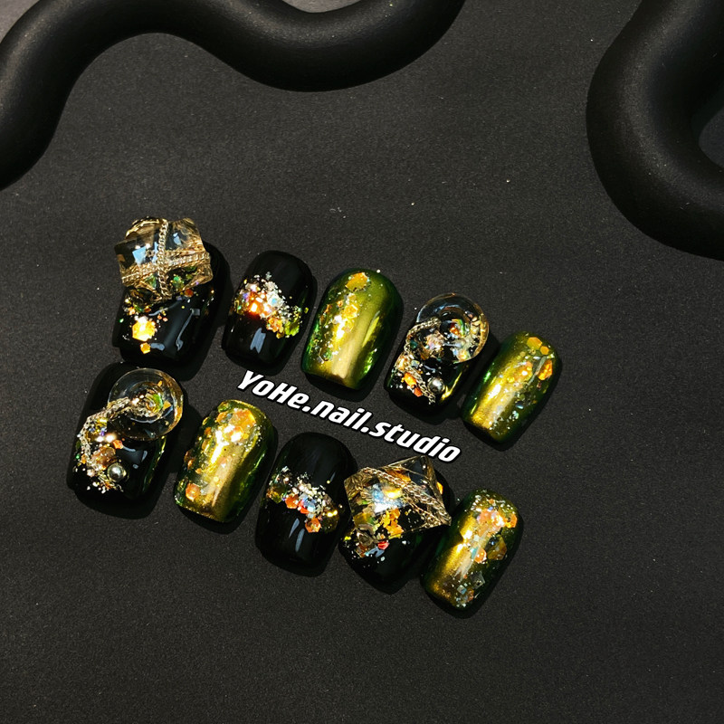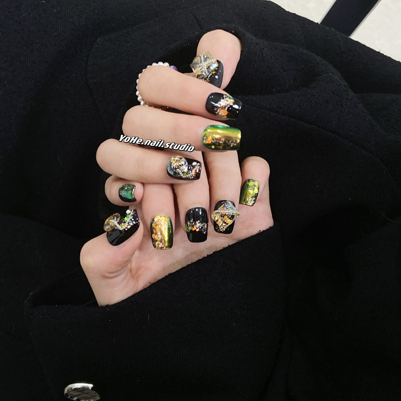 淘宥荷Studio 春夏限定撞色亮片穿戴甲美甲定制假指甲手工定制