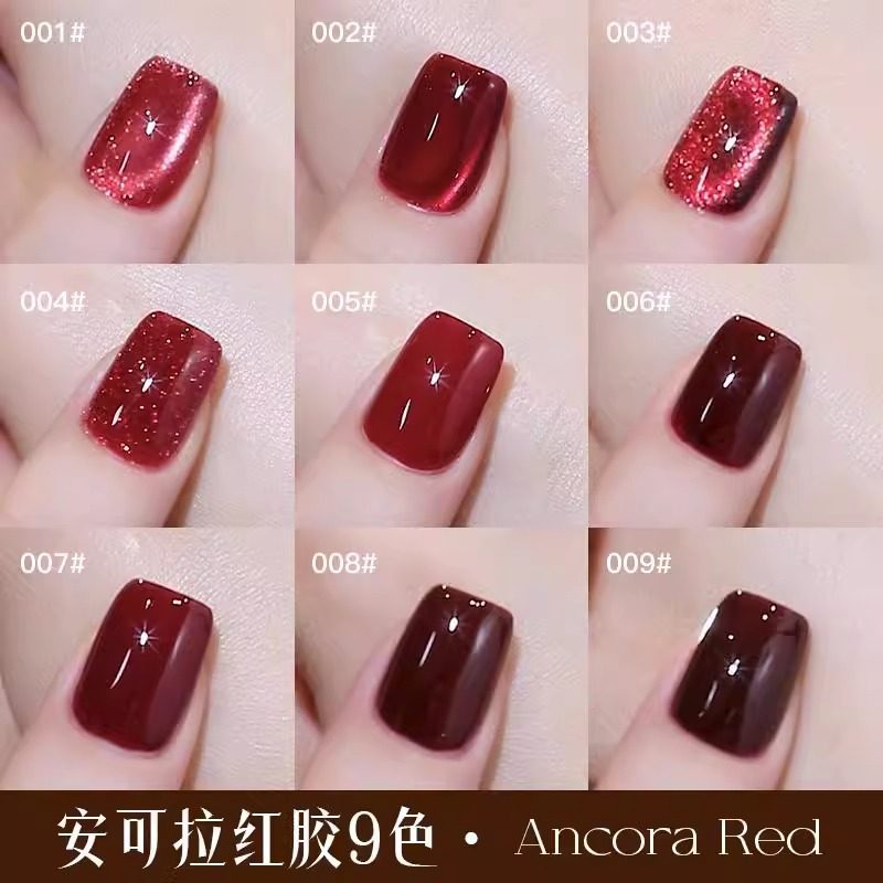 天猫kaniu/卡妞安可拉红色猫眼指甲油胶2026新款秋冬酒红色玻璃珠美甲
