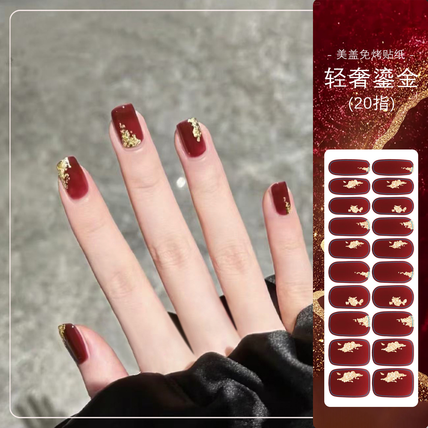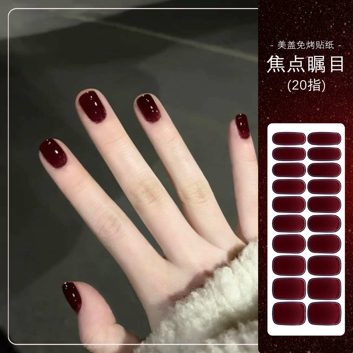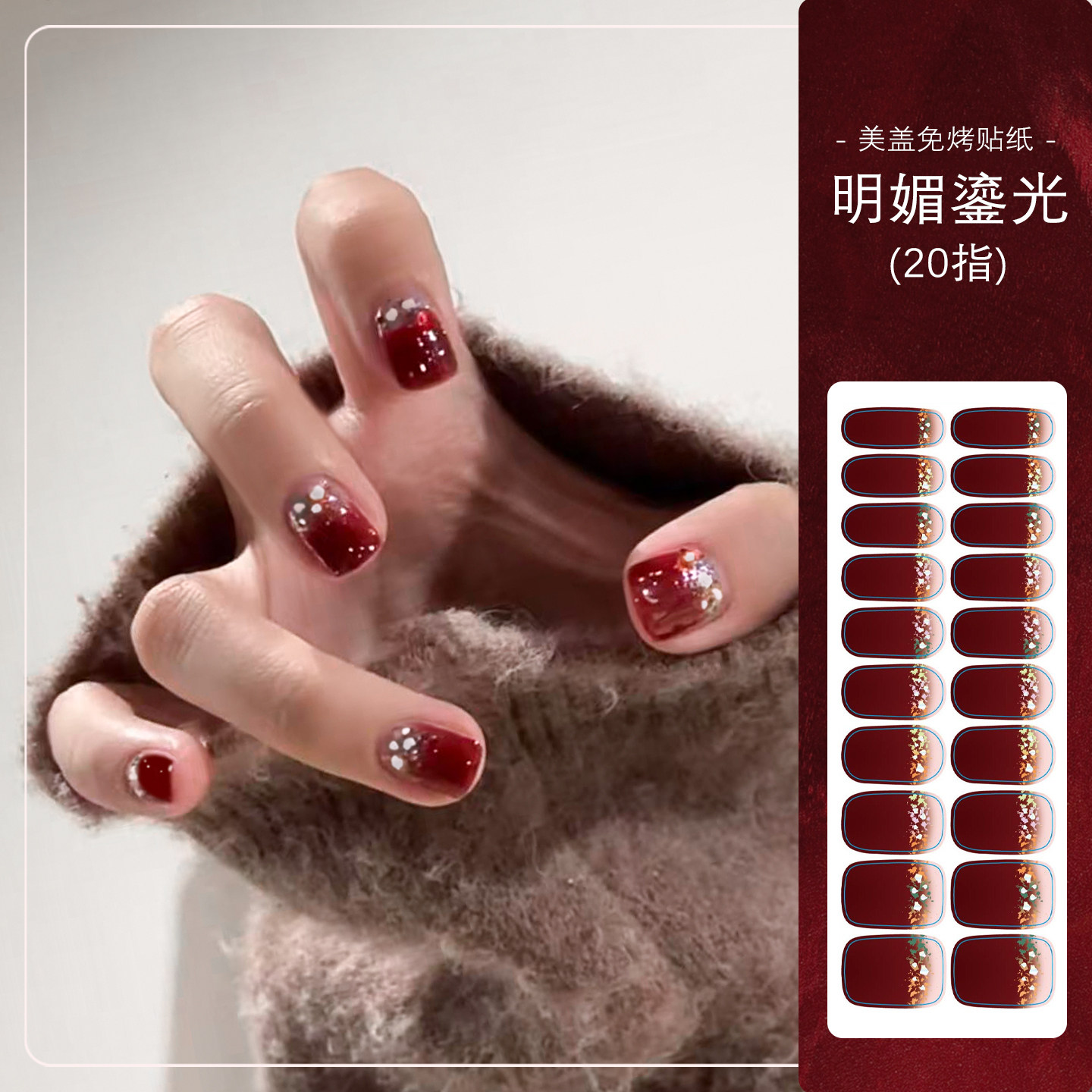 美盖免烤指甲贴纸,2026新年限定款“新年红”系列,以浓郁喜庆的红色为主调,融合细腻凝胶质感,无需烤灯即可轻松贴合甲面,持久亮泽不伤甲。采用环保材质,撕拉式设计方便快捷,新手也能轻松上手。图案精致百搭,无论是日常通勤、约会聚会,还是新年节庆场合,都能瞬间提升指尖魅力。20片装丰富造型选择,满足不同甲型需求,持久度可达7-10天,不易翘边脱落。告别传统美甲繁琐步骤,美盖免烤贴纸让美丽更简单、更自由,是追求便捷与时尚女性的理想之选。新年焕新甲,从一抹亮眼红开始!