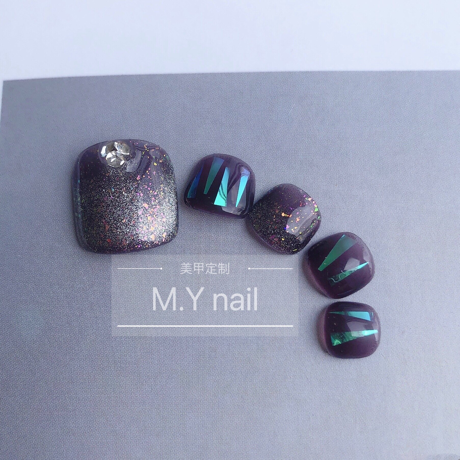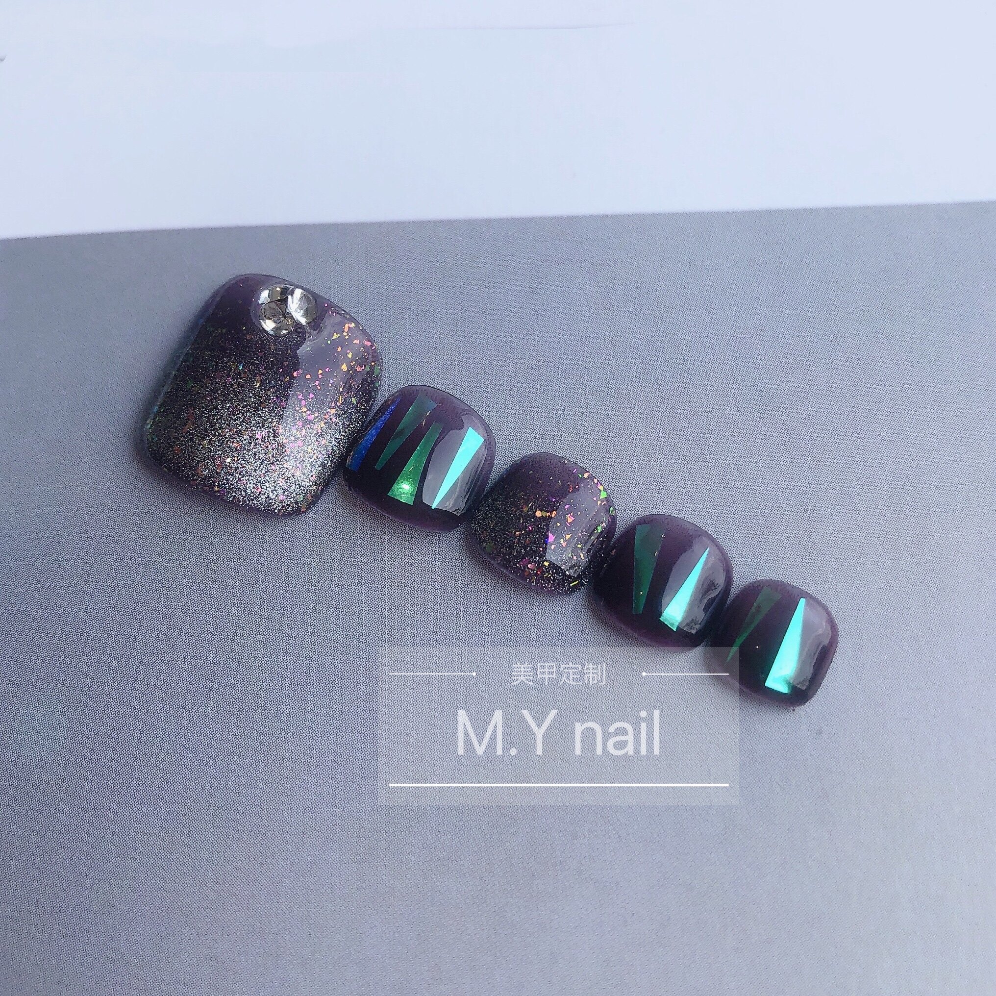 淘宝春夏星空感透紫色脚指甲片美甲贴片手工定制甲片穿戴甲假指甲
