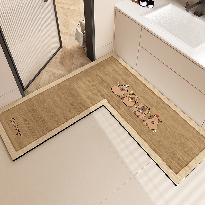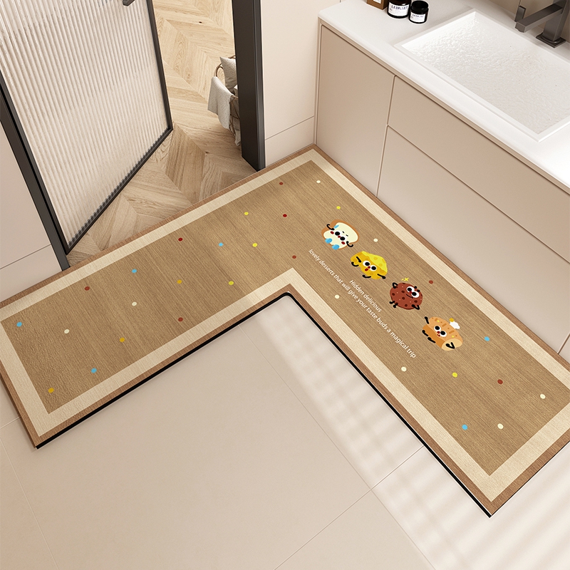 卡通厨房专用地垫家用耐脏防滑防油可擦免洗L型地毯吸水速干脚垫