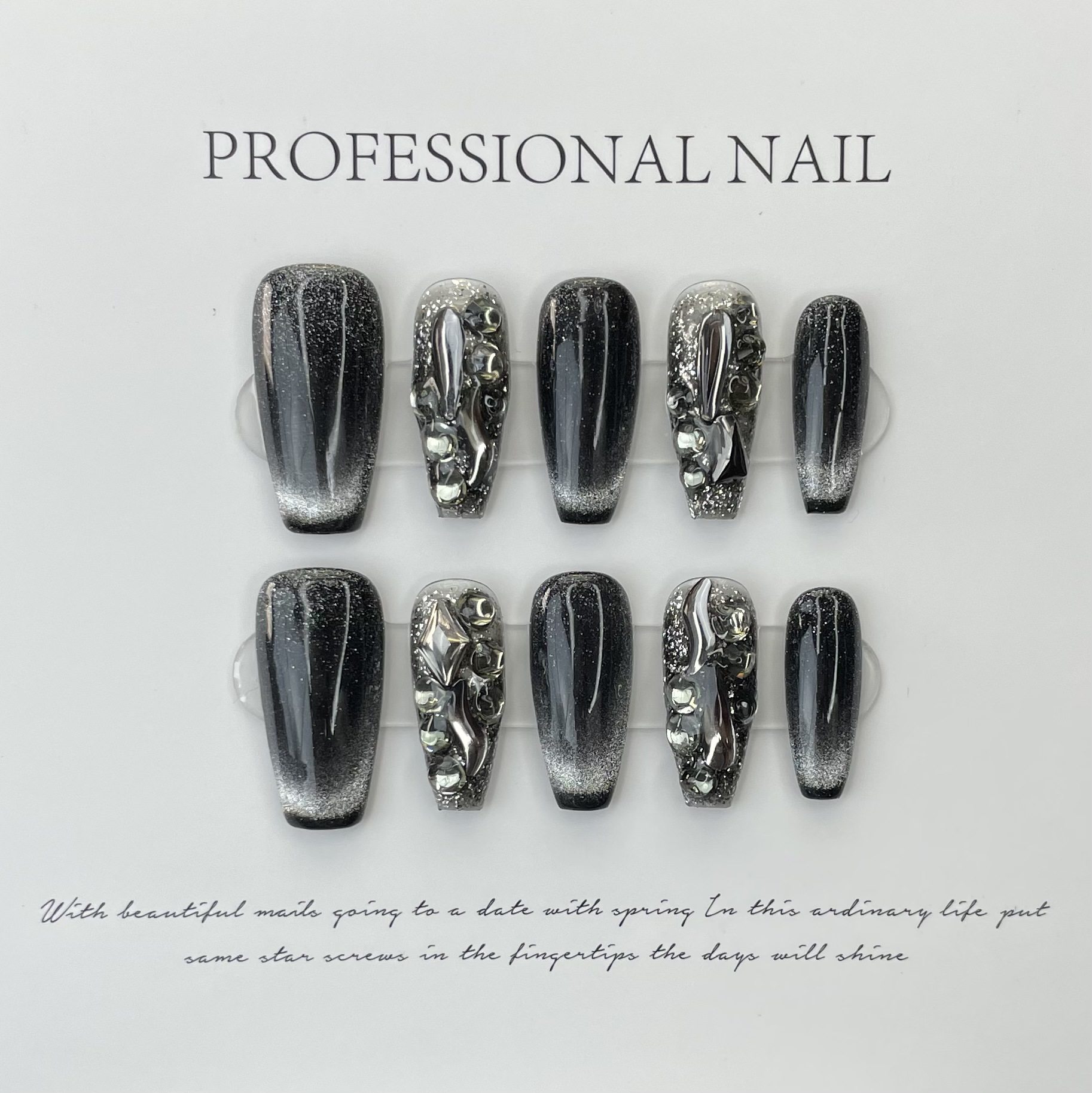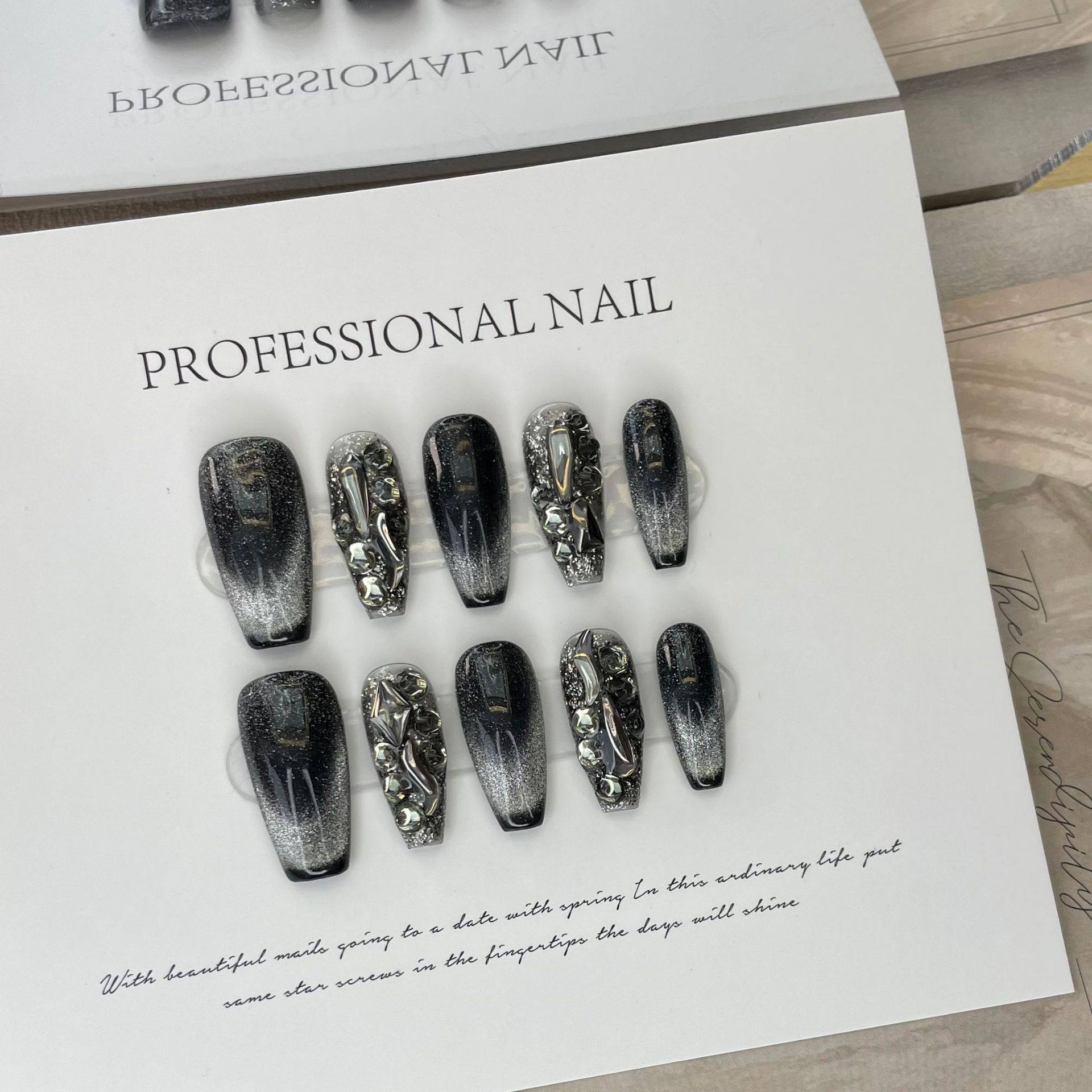淘宝【JAM酱】晶石满钻猫眼纯手工穿戴甲短梯显白暗黑色重工手工美甲