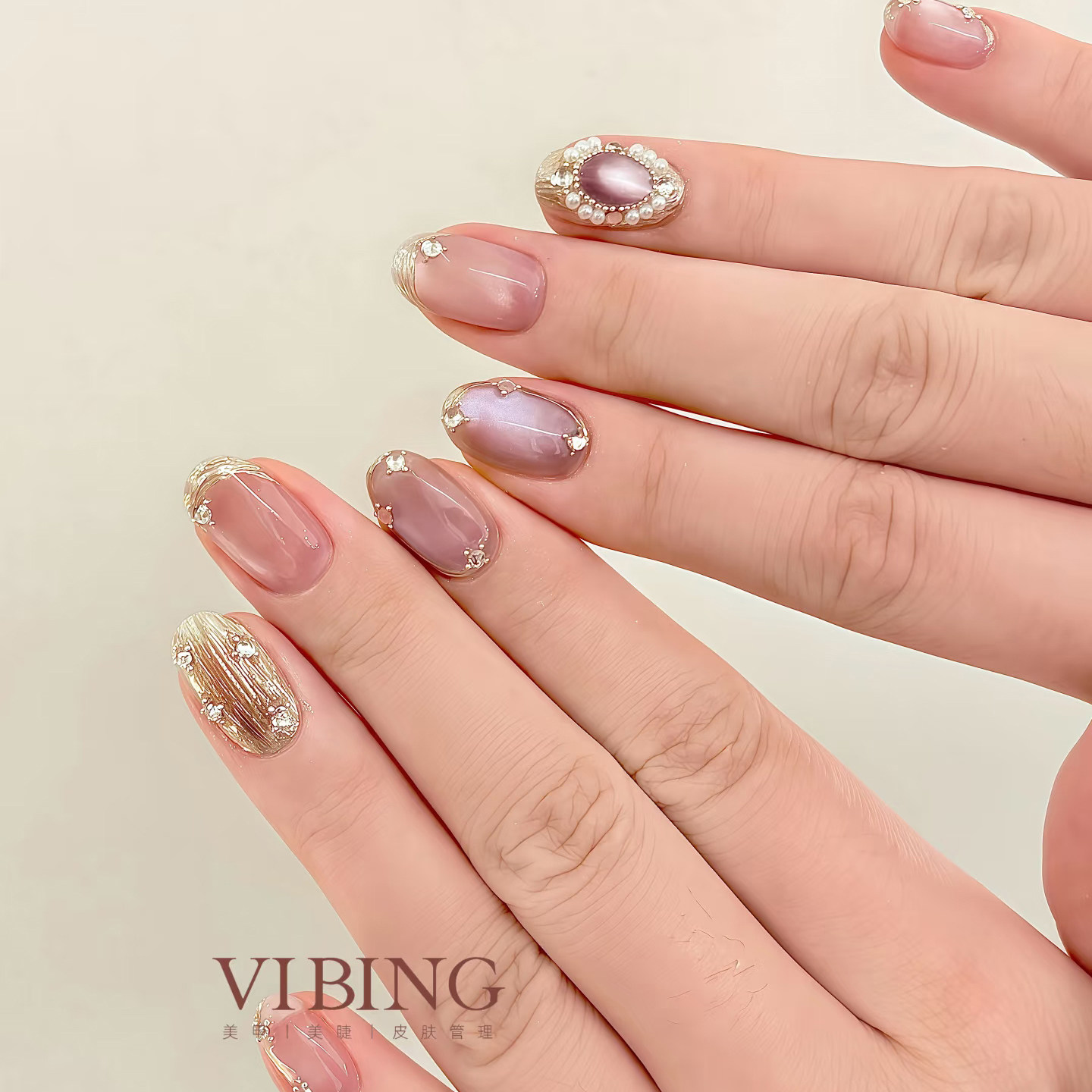 淘假指甲贴片晶石猫眼光疗新娘孕妇仙女玻璃珠可穿戴式成品美甲甲片