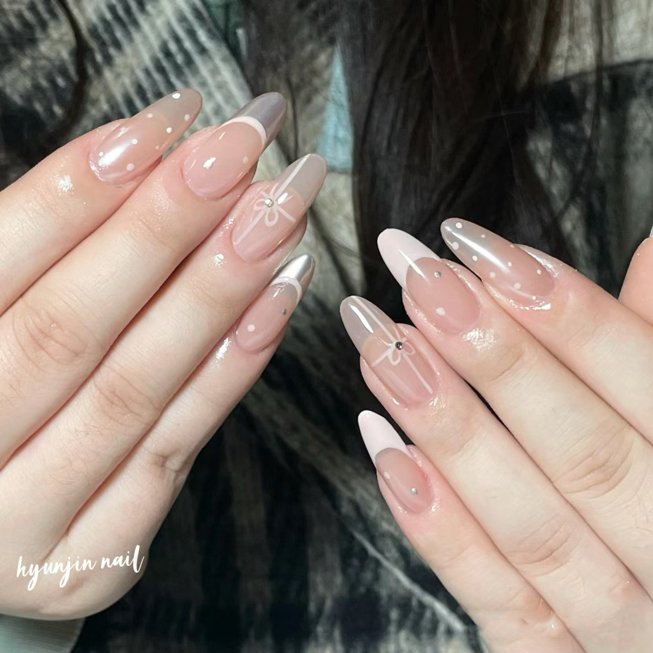 淘宝林先生穿戴甲粉色蝴蝶法式波点美甲显白假指甲miumiu风纯手工美甲