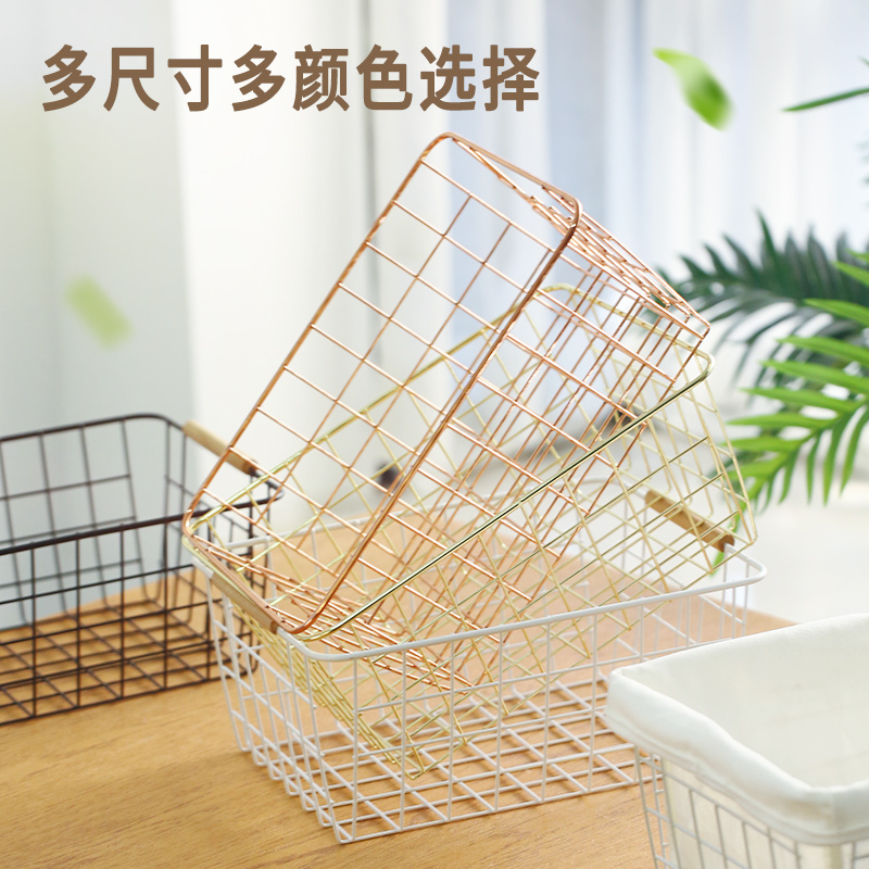 天猫铁艺篮子收纳篮金属收纳筐零食衣柜挂篮桌面置物筐厨房电视柜铁框