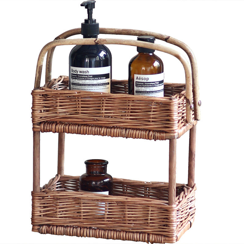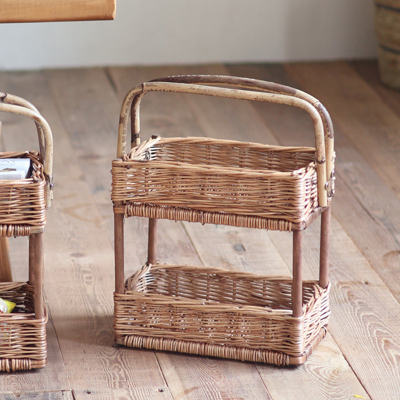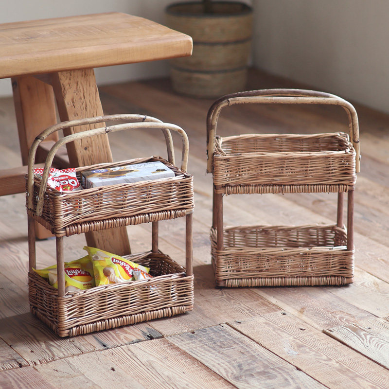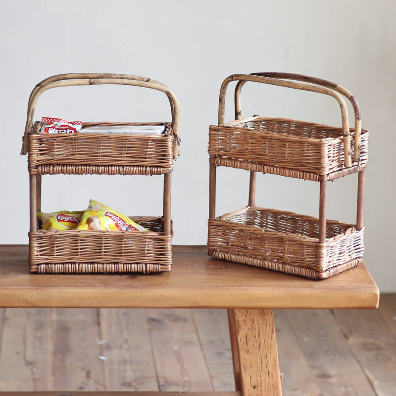 淘宝手工编织双层柳编收纳篮手提藤编收纳筐家居客厅厨房装饰置物架