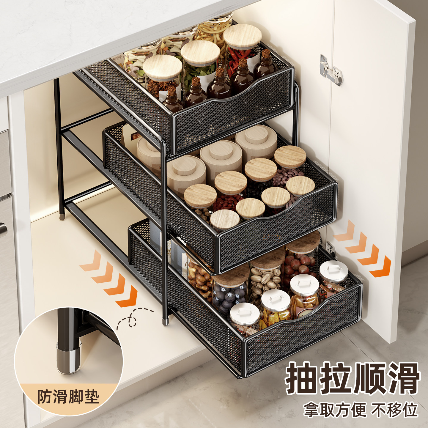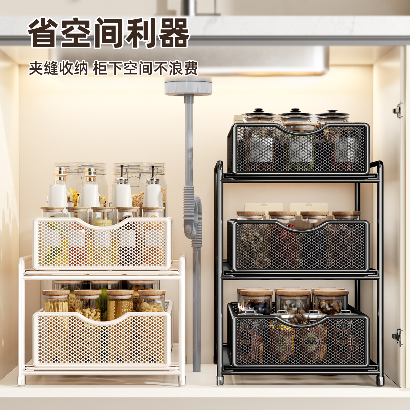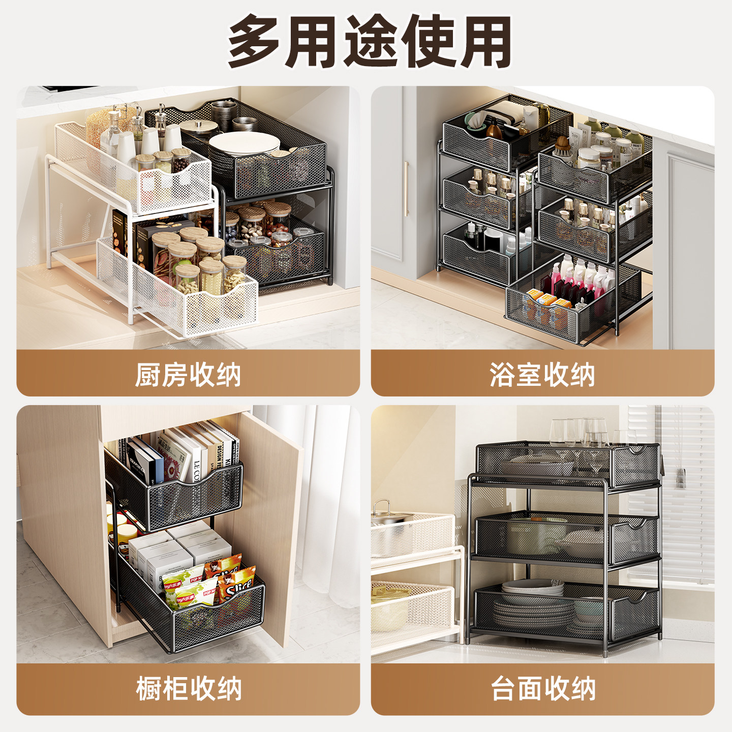 天猫抽拉式置物架橱柜内分层架子厨房多功能调料收纳盒深柜内抽屉拉篮