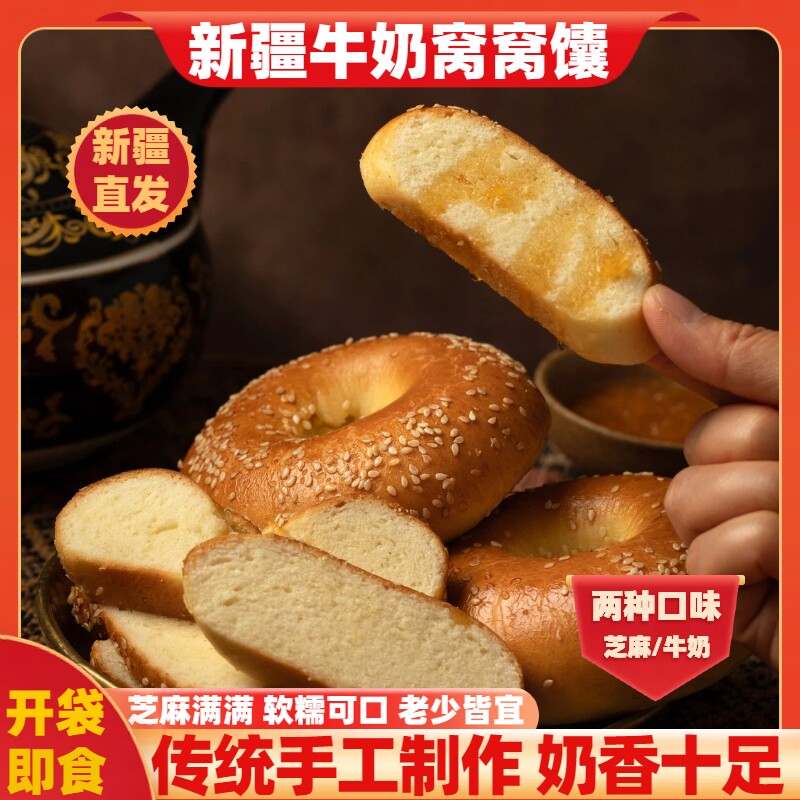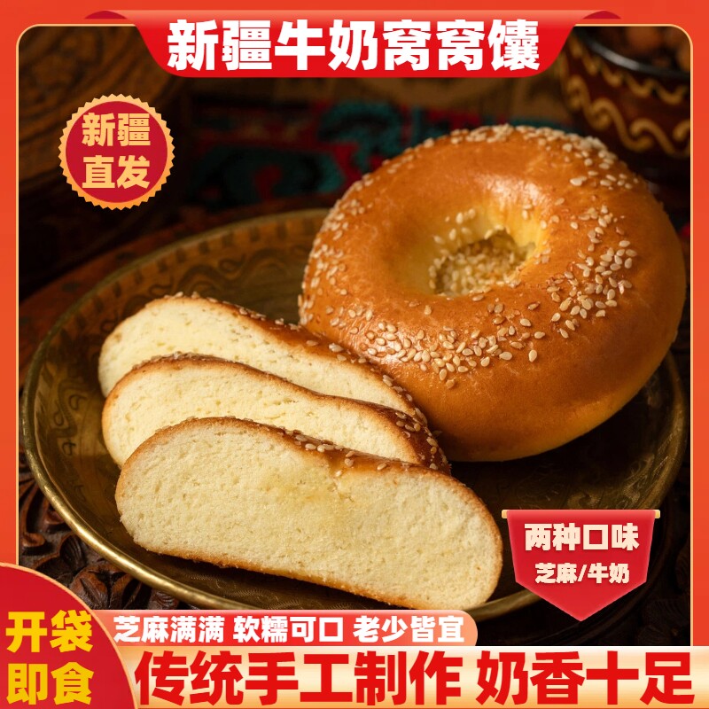 天猫新疆特产牛奶芝麻窝窝馕美食即食囊糕点心传统手工烤馕饼零食早餐