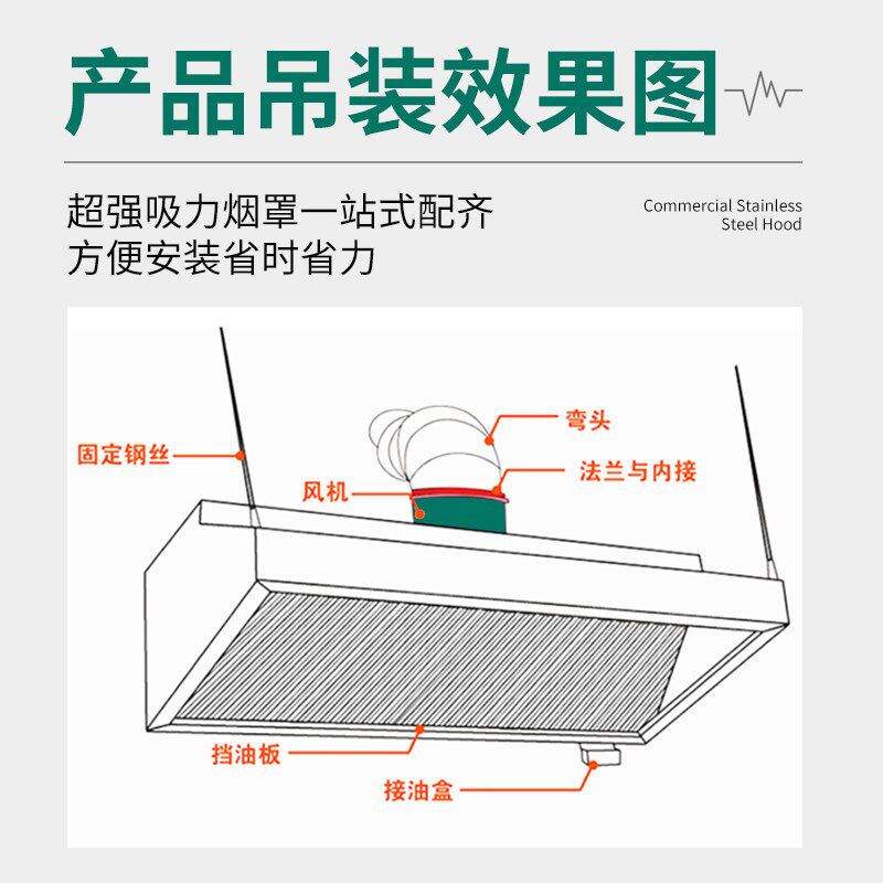 淘宝商用不锈钢油烟机餐厅饭店食堂厨房大吸力静音风机排烟油烟罩定制