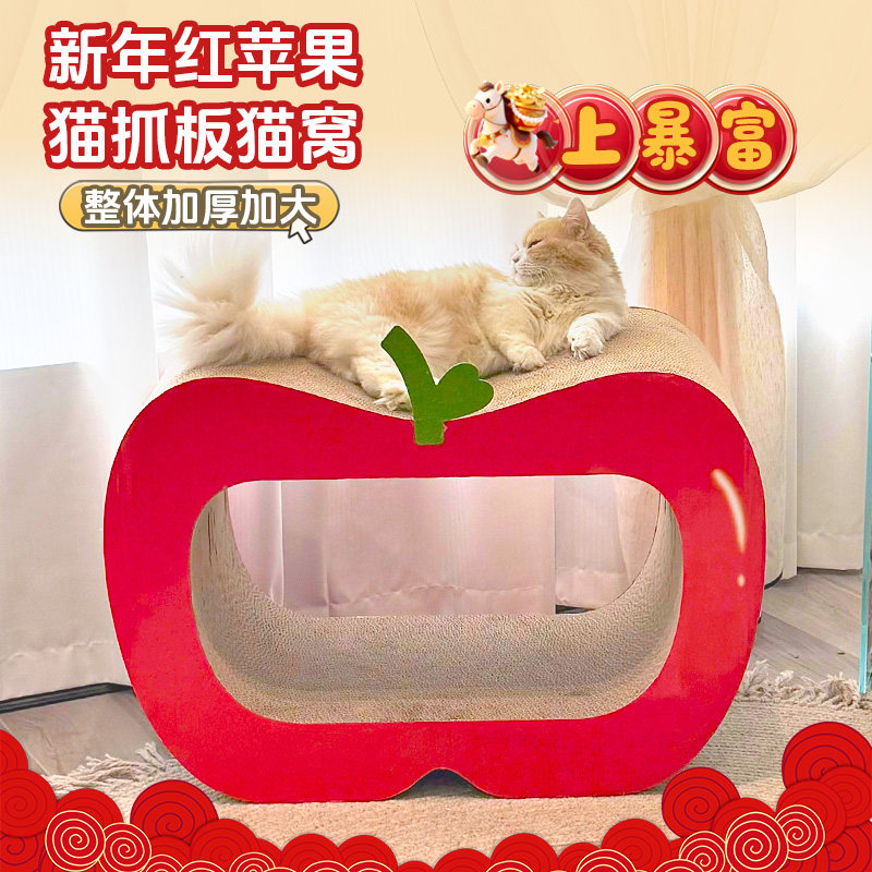 淘宝红苹果猫抓板猫窝一体耐磨瓦楞纸立式猫抓柱猫抓窝猫玩具猫咪用品
