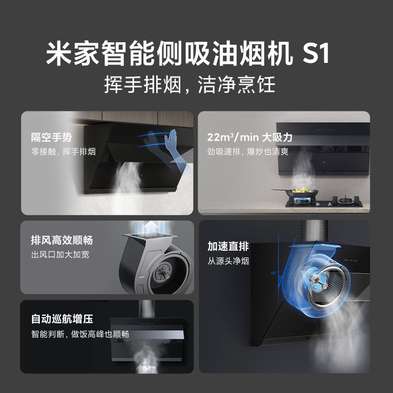 天猫小米米家侧吸油烟机S1大吸力家用厨房抽油烟机自清洁