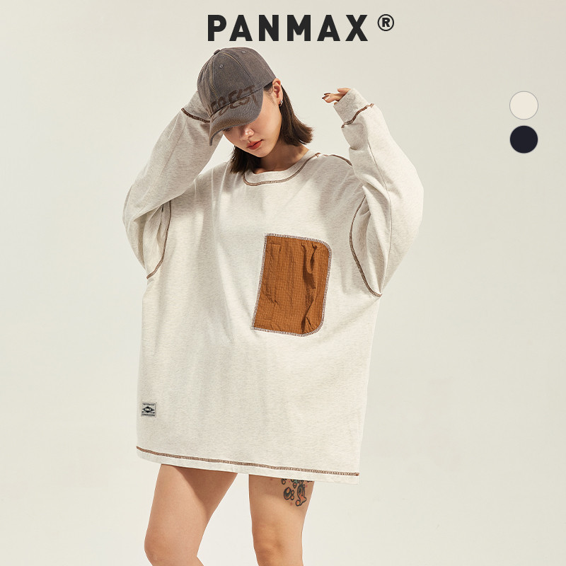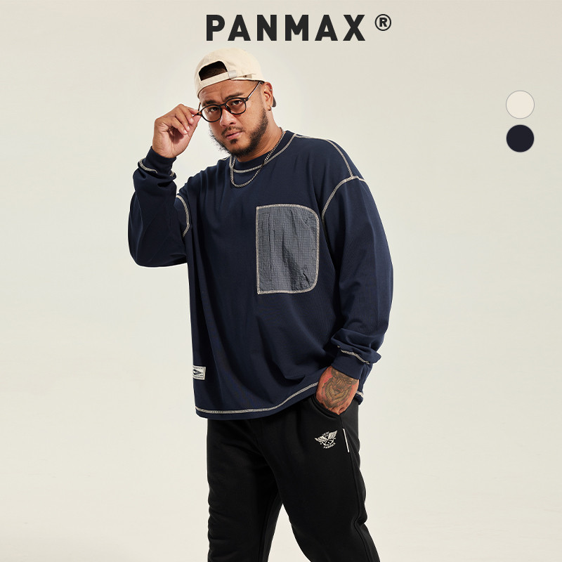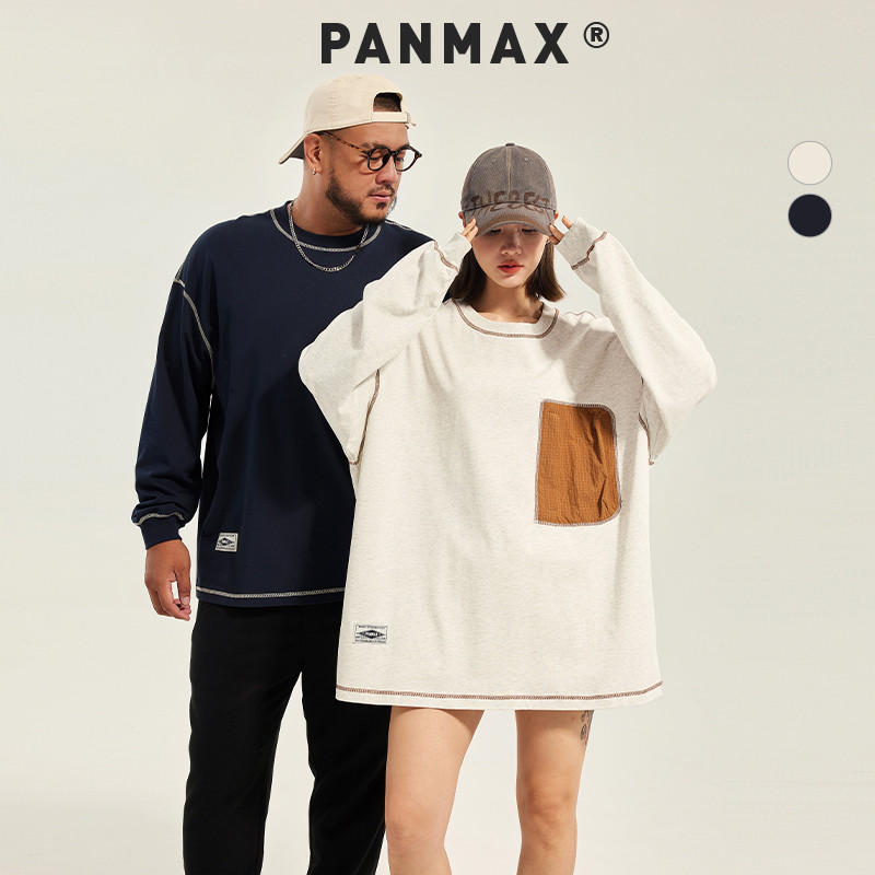 天猫PANMAX潮牌大码男装明线撞色打底衫复古加大情侣上衣长袖T恤