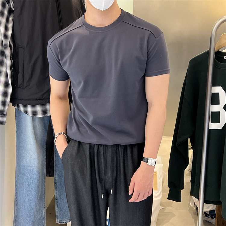 淘宝韩国男装代购直播MILLER高品精工拼接肩线纯色打底衫休闲短袖T恤