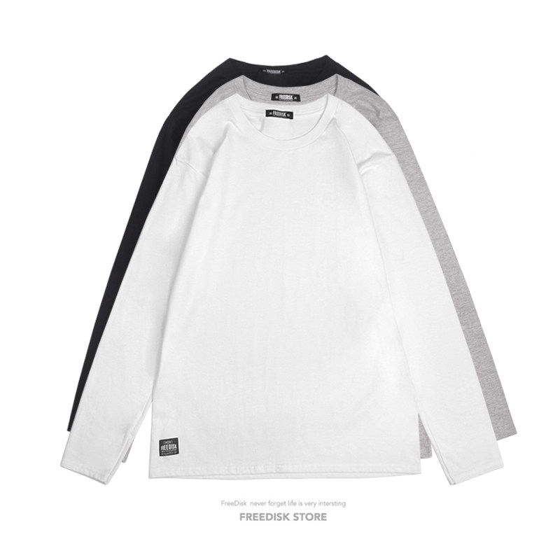 LUUD 100全棉高支高密百搭长袖T恤男纯色百搭复古圆领打底衫上衣