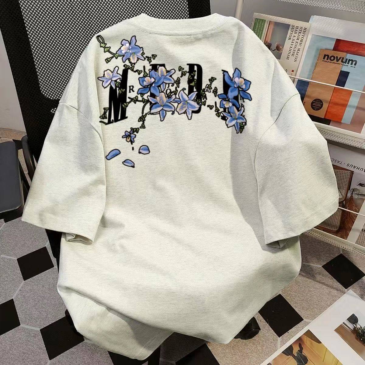 淘宝重磅纯棉韩版复古藤蔓花卉印花短袖T恤情侣装夏季宽松休闲上衣男