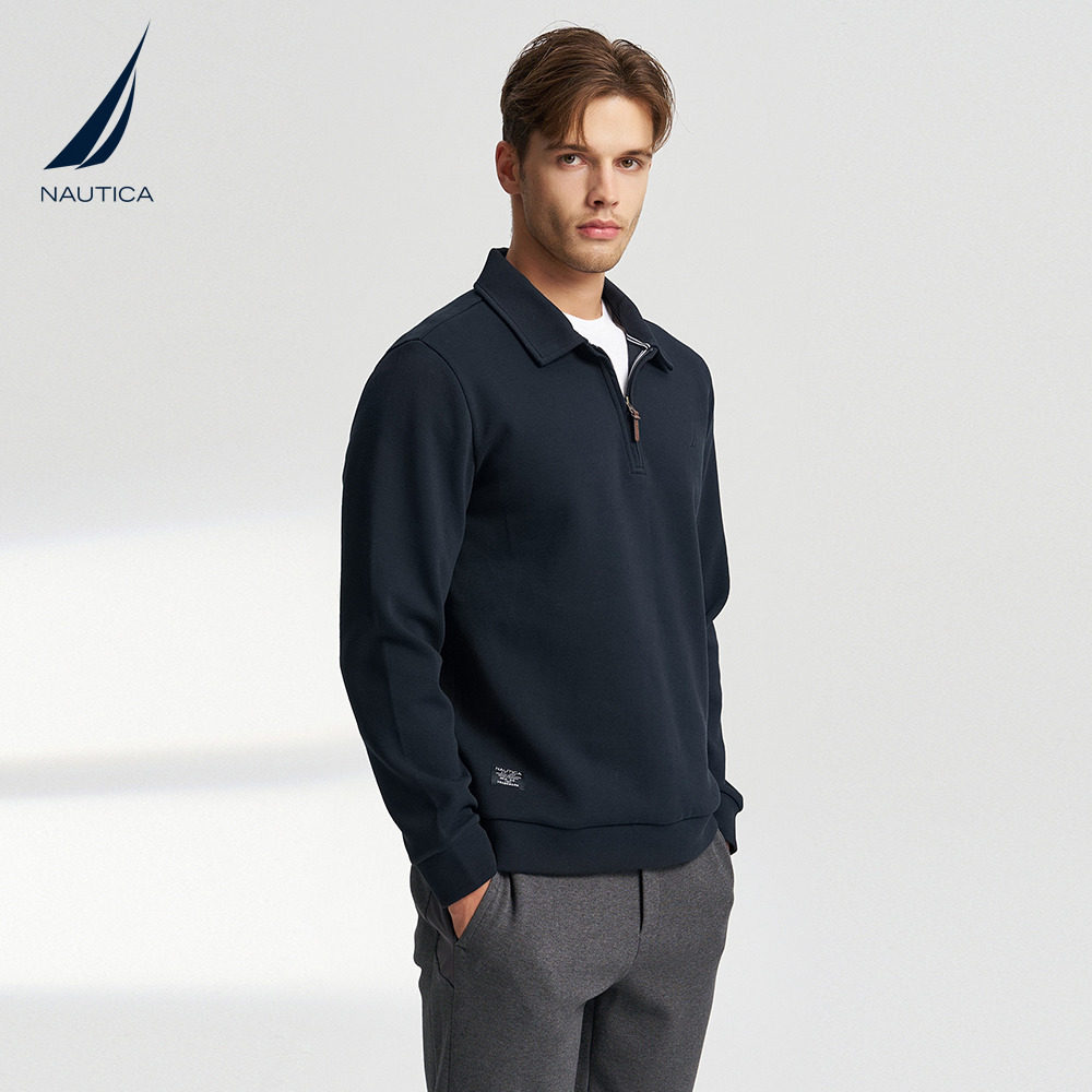 天猫NAUTICA/诺帝卡男装春秋款透气亲肤半开襟长袖polo翻领T恤KO4306