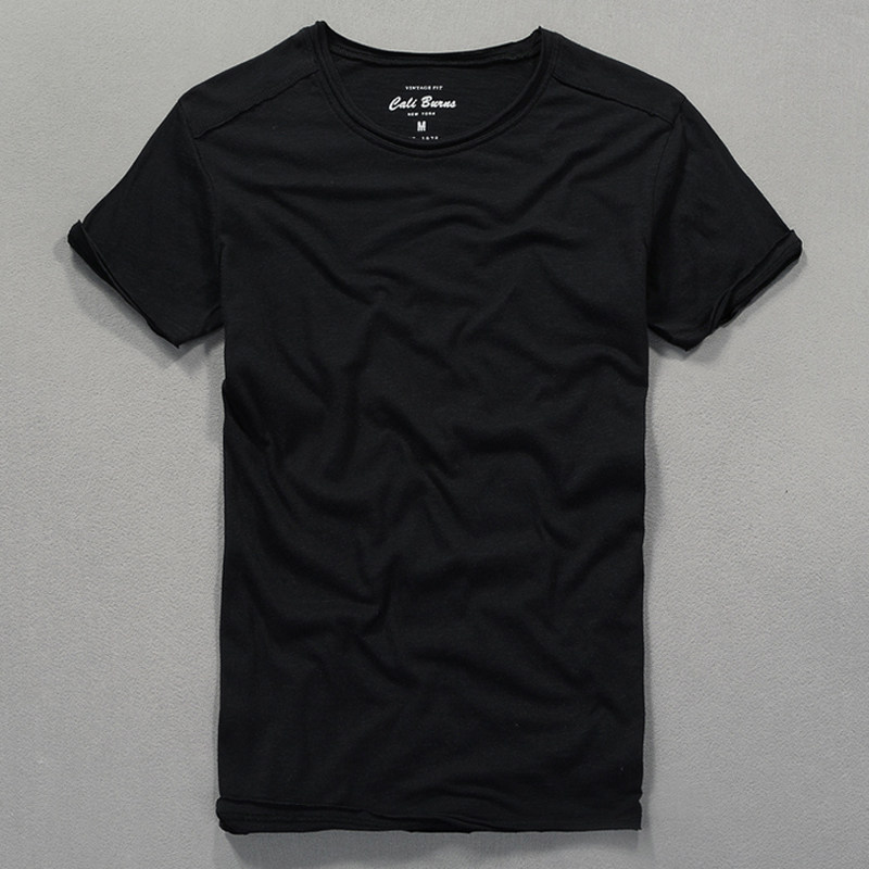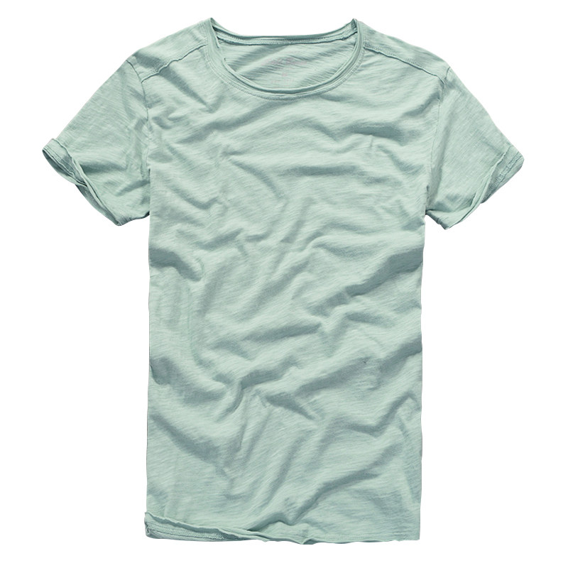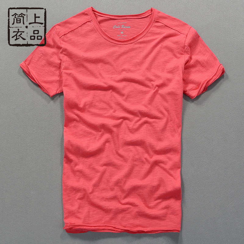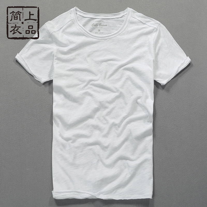 淘宝夏季薄款竹节棉短袖男T恤修身圆领纯色潮t日系男士纯棉做旧体恤衫