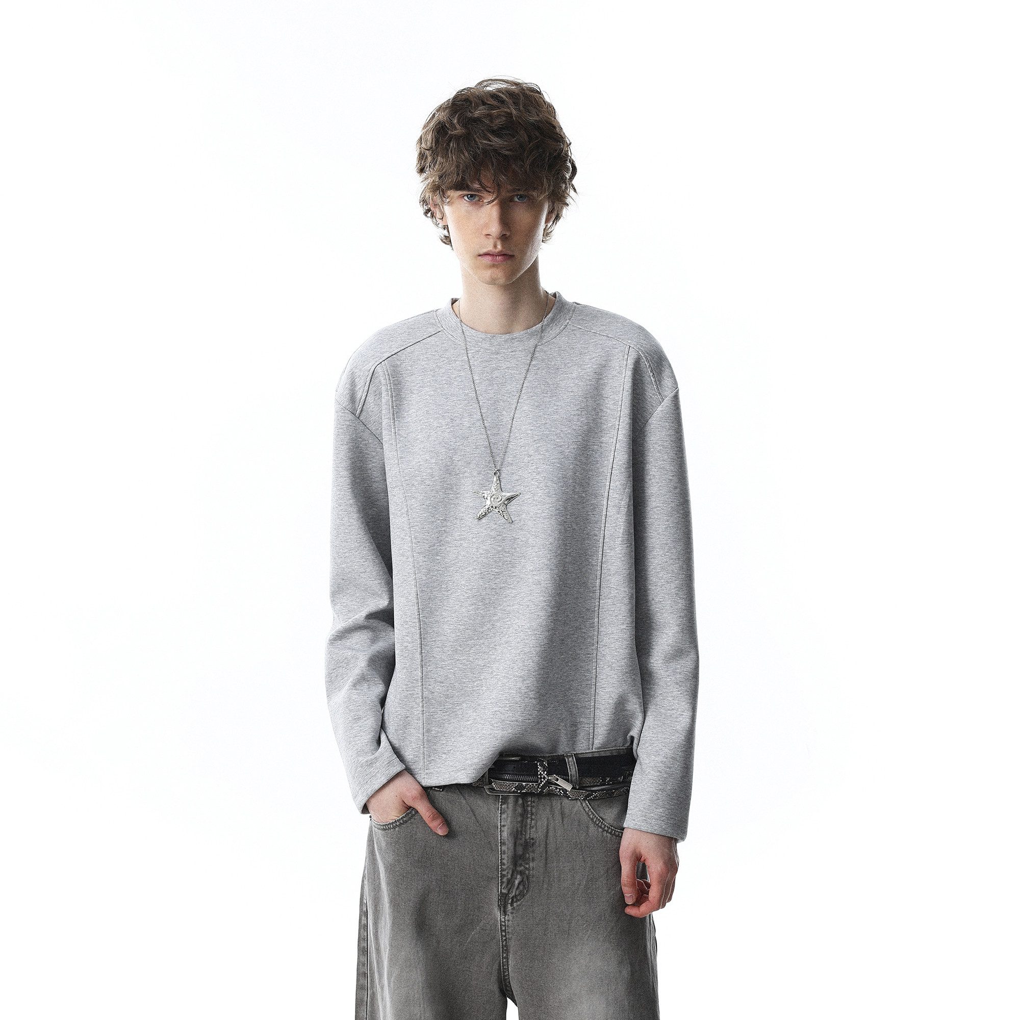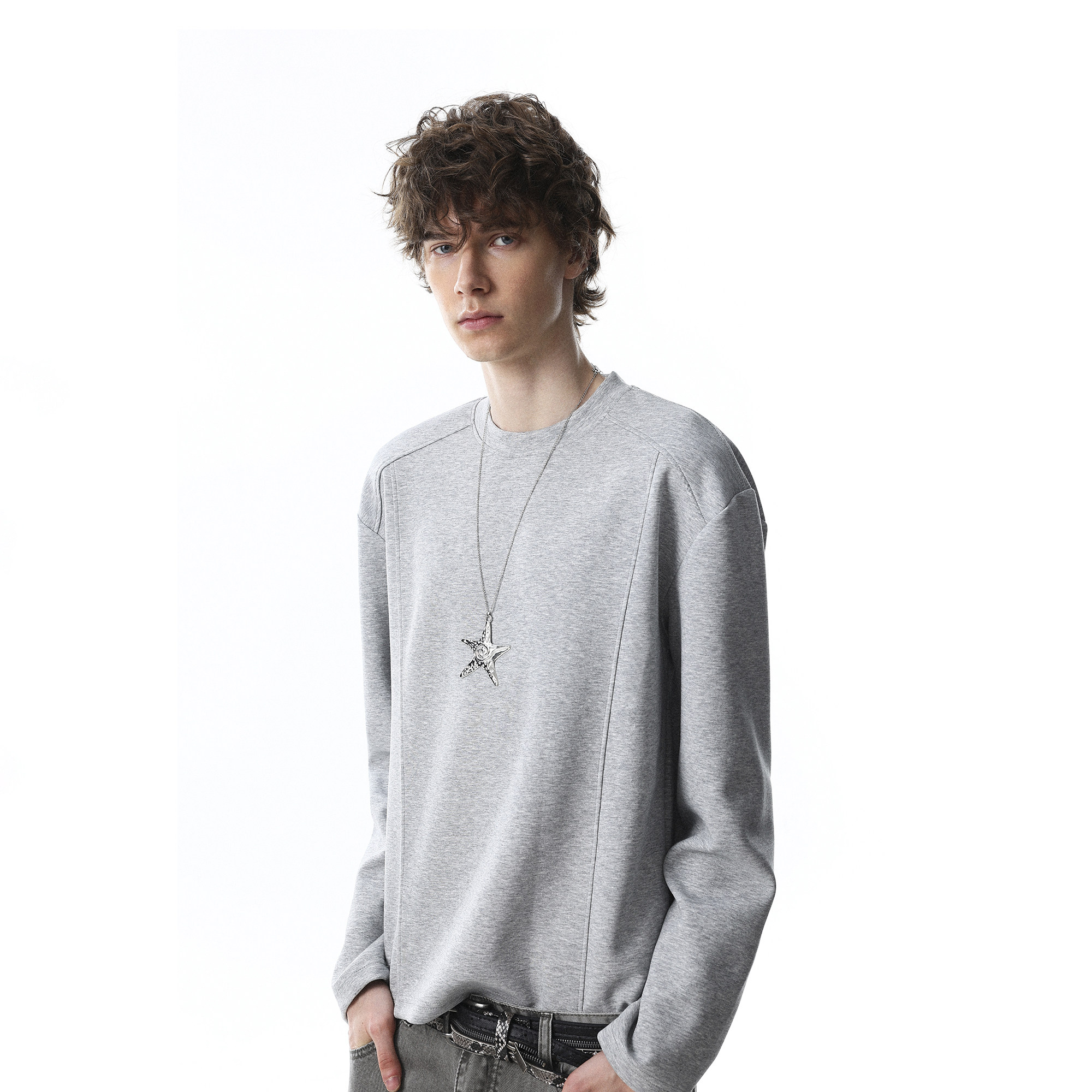 LUUD 100全棉高支高密百搭长袖T恤男纯色百搭复古圆领打底衫上衣