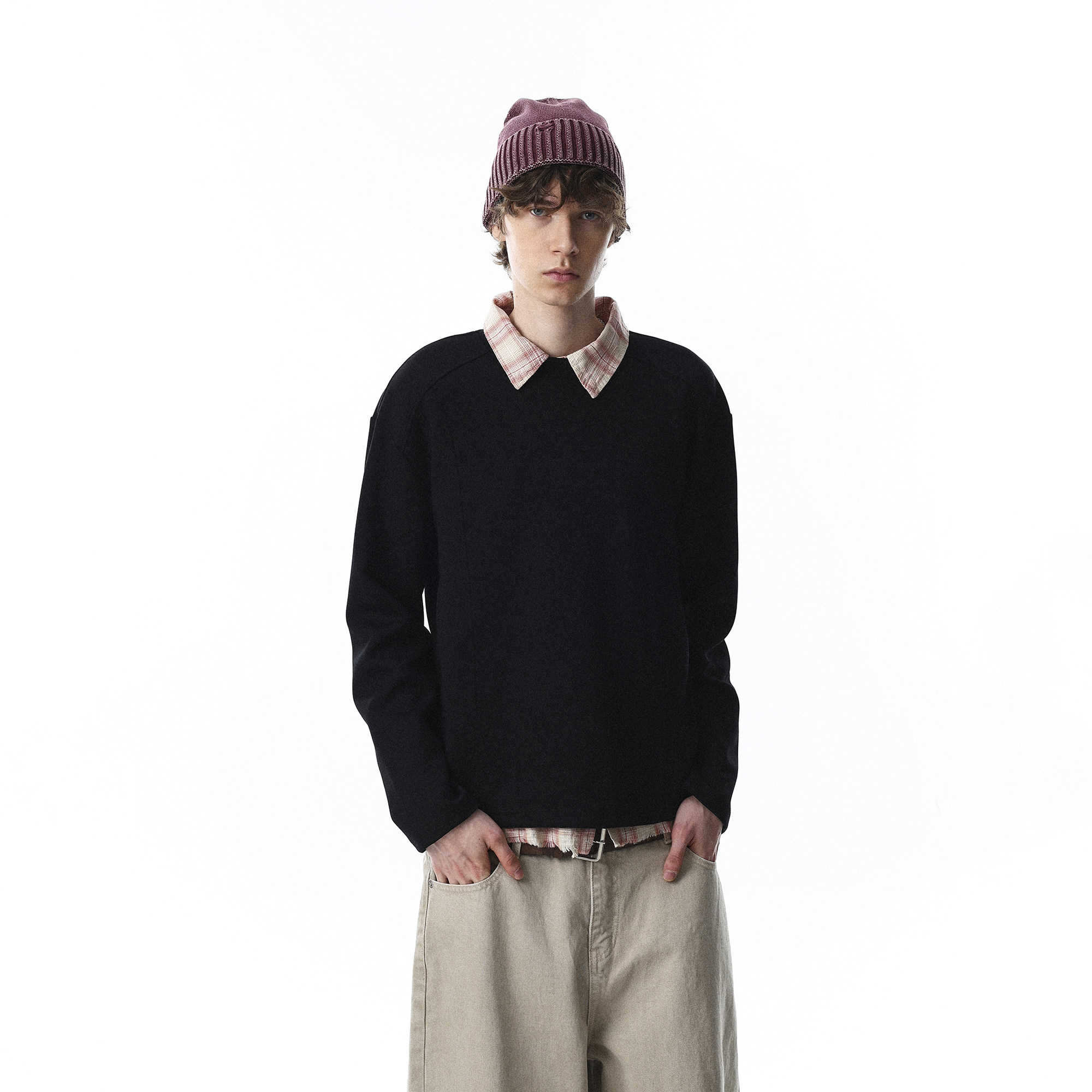淘灰色假两件长袖亨利领t恤男款秋季华夫格卫衣美式运动内搭打底衫