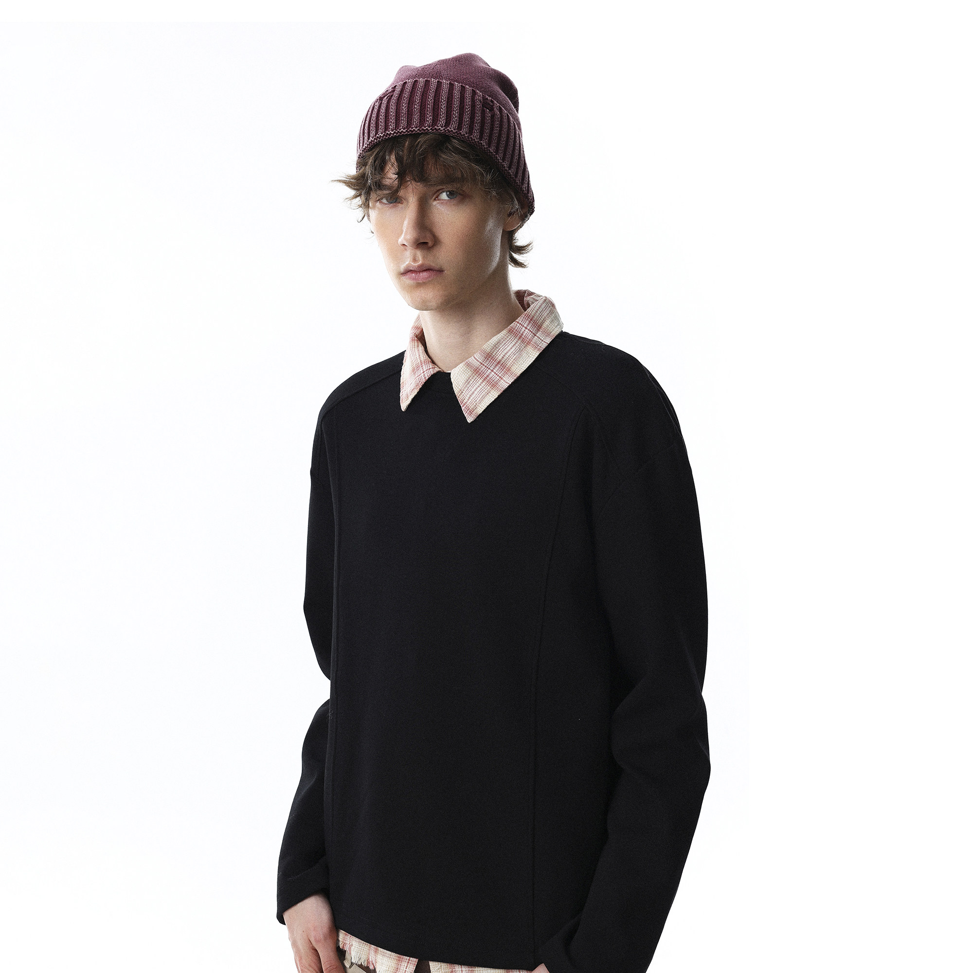 淘LUUD 100全棉高支高密百搭长袖T恤男纯色百搭复古圆领打底衫上衣