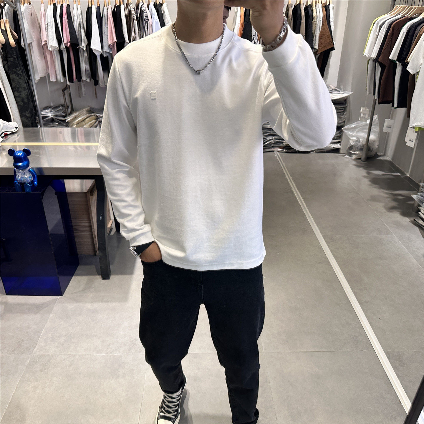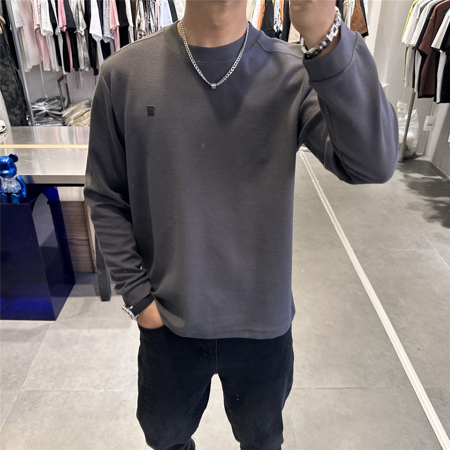 淘宝2025秋季新款简约贴标刺绣圆领长袖T恤男韩版宽松弹力纯色打底潮t