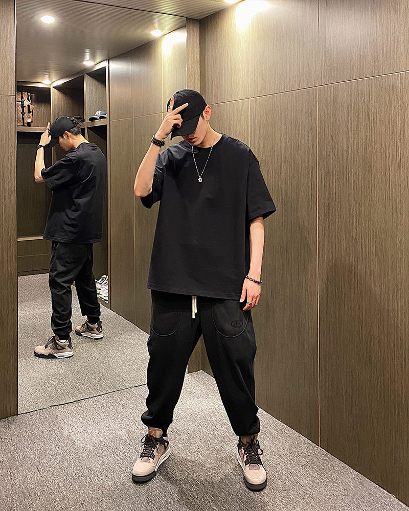 淘男士短袖宽松薄款青年T恤t体恤潮流大码圆领男装纯色冰丝内搭衣服