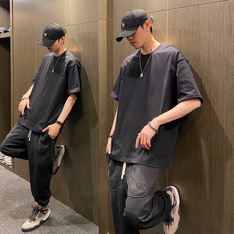 男士短袖宽松薄款青年T恤t体恤潮流大码圆领男装纯色冰丝内搭衣服