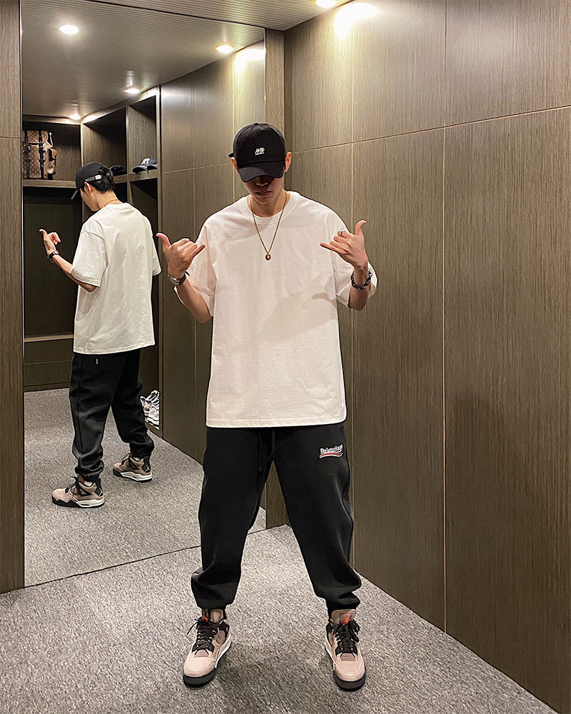 淘白色T男夏宽松百搭男女同款250g高品质纯棉t恤潮流半袖Supermet恤