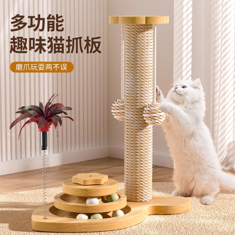 天猫猫抓板耐磨不掉屑猫爬架剑麻猫咪爪柱小猫玩具逗猫棒自嗨解闷一体