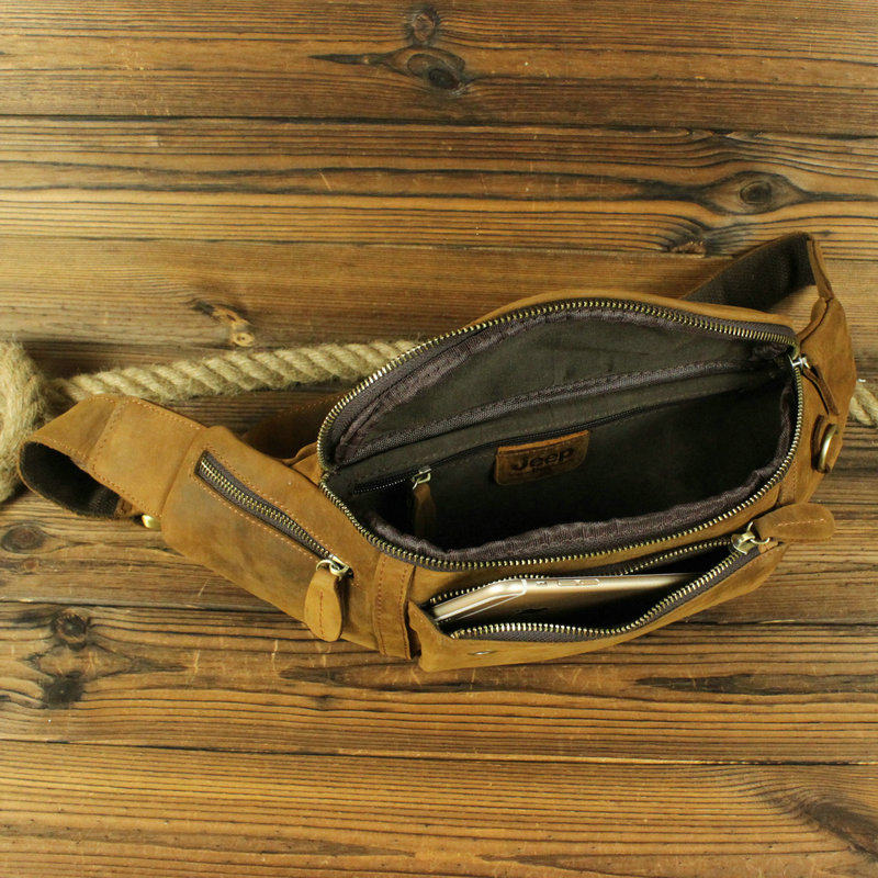 淘宝原创手工疯马皮复古头层牛皮真皮大容量大号腰包胸包斜挎包手机包