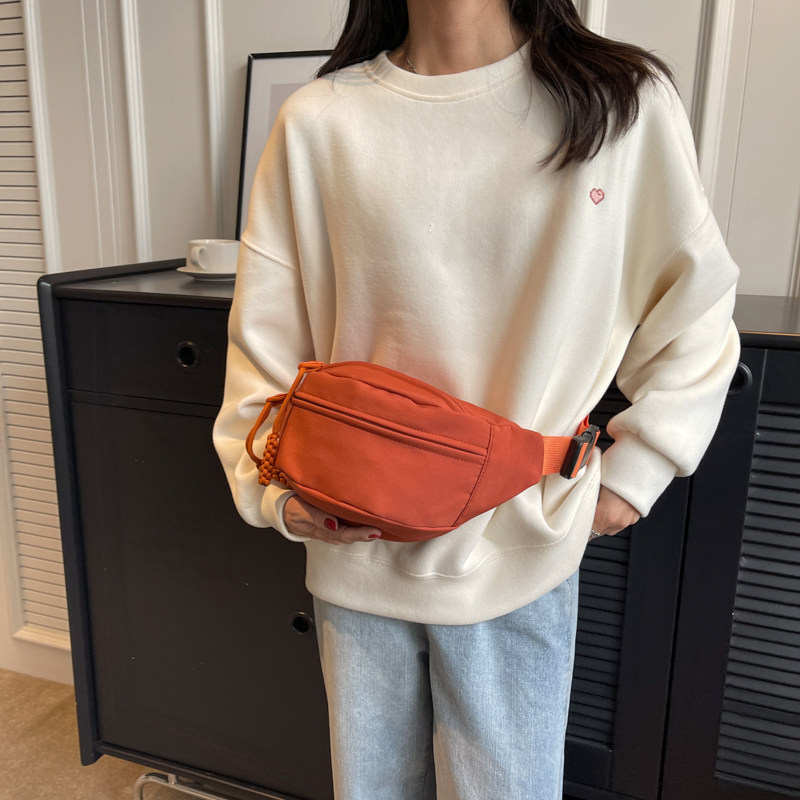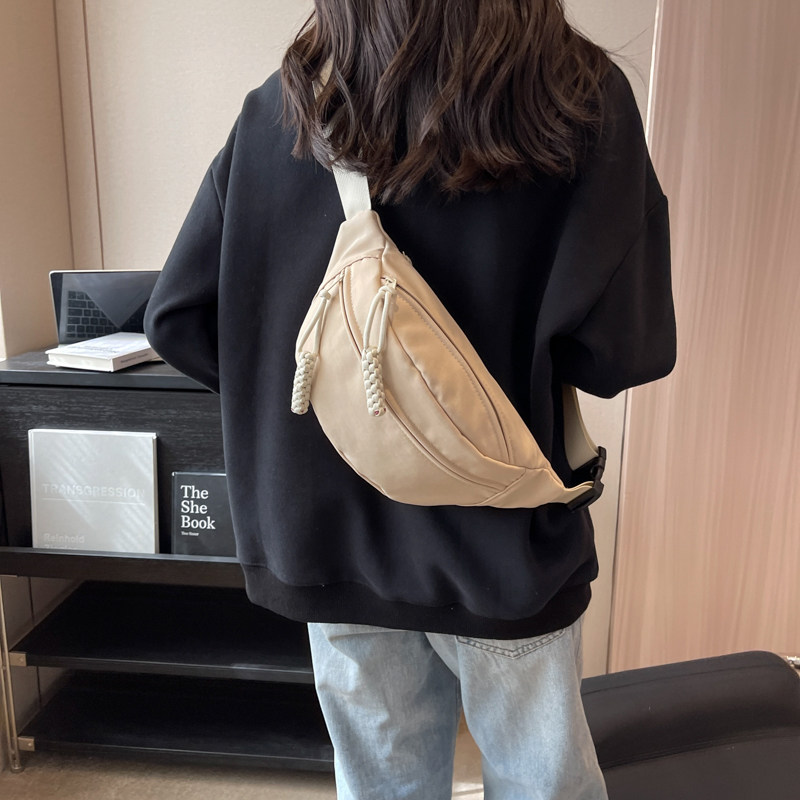 日系复古风斜挎包女小众抽绳设计胸包运动骑行大容量腰包男饺子包