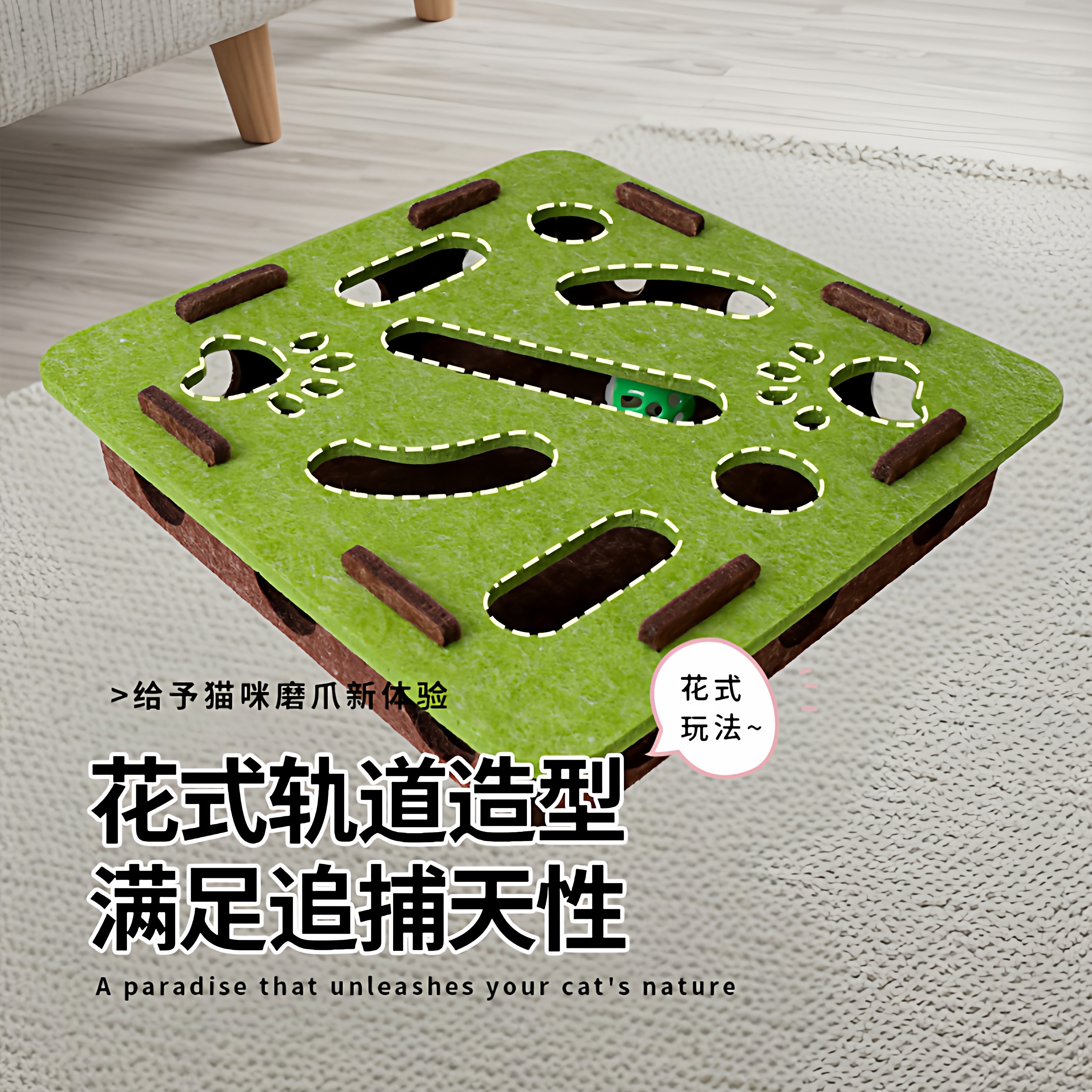 这款猫玩具益智迷宫自嗨解闷神器,专为猫咪设计,集趣味与益智于一体。采用环保毛毡材质制成,安全无毒,耐用不易撕坏。迷宫结构搭配多个掏洞设计,激发猫咪探索欲与狩猎本能,让它在钻洞、扑抓中释放精力。内置逗猫铃铛球,滚动时发出清脆声响,吸引猫咪追逐玩耍,有效缓解孤独与焦虑。无需主人陪伴,猫咪也能自娱自乐,是居家解闷的理想选择。无论是幼猫还是成猫,都能在互动中锻炼敏捷性与思维能力,提升生活质量。小巧便携,清洁方便,是关爱猫咪健康与快乐的贴心之选。