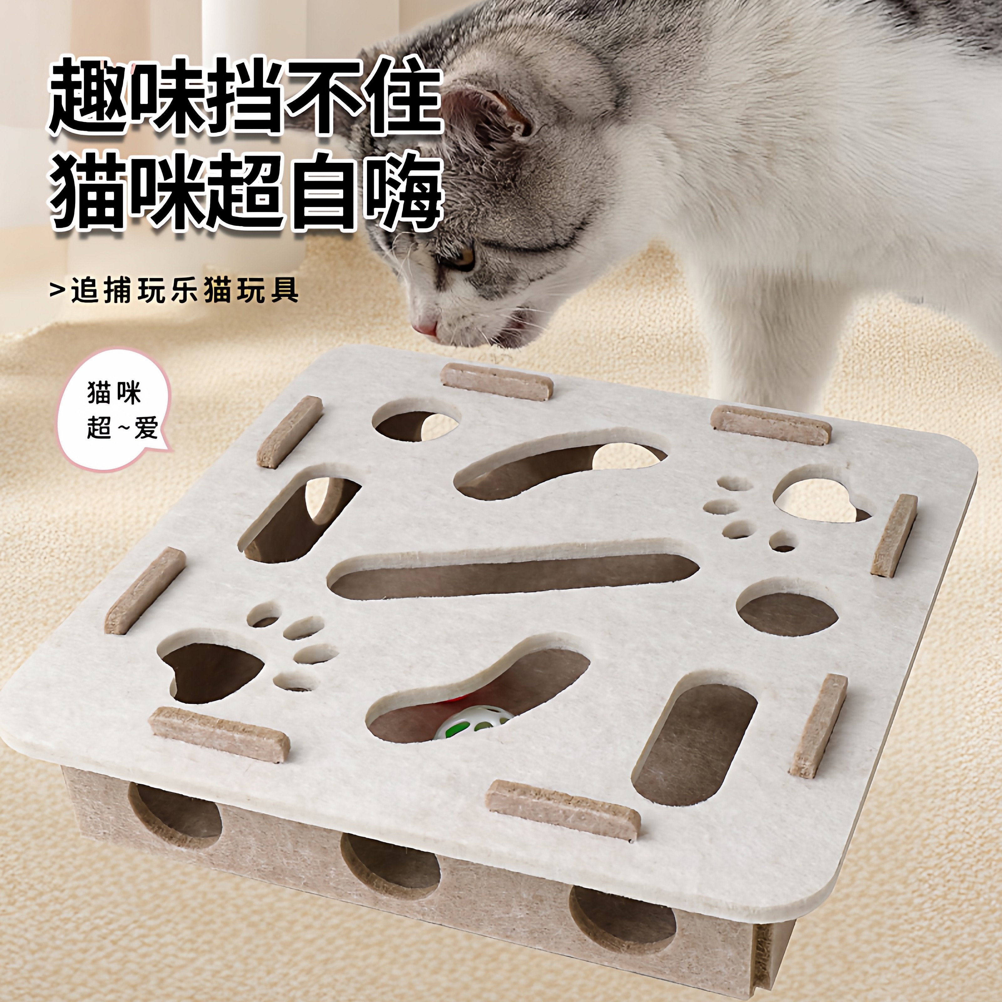 淘宝猫玩具益智迷宫自嗨解闷神器小猫宠物猫咪掏洞毛毡盒子逗猫铃铛球