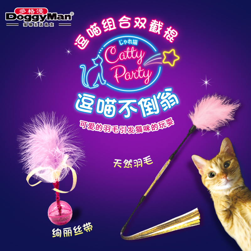 日本多格漫猫玩具逗猫棒懒喵超长逗猫棒羽毛逗猫棒哗啦啦逗猫棒