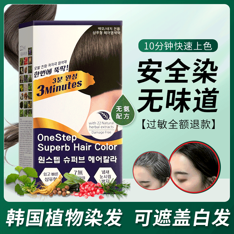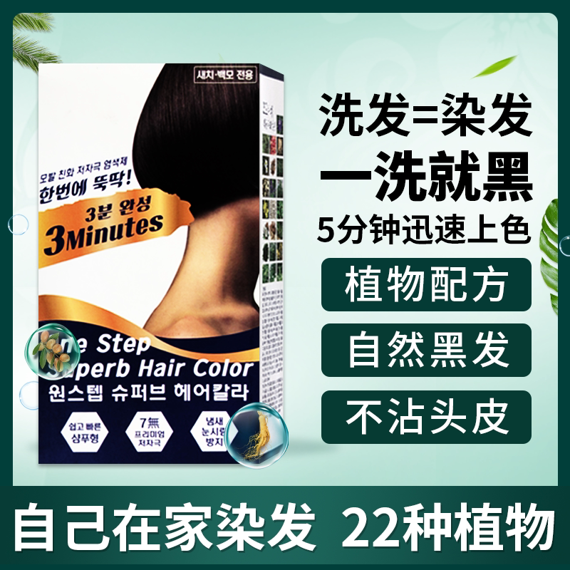 淘宝韩国纯植物染发剂男女自己在家染发不沾头皮天然无刺激泡泡染发膏
