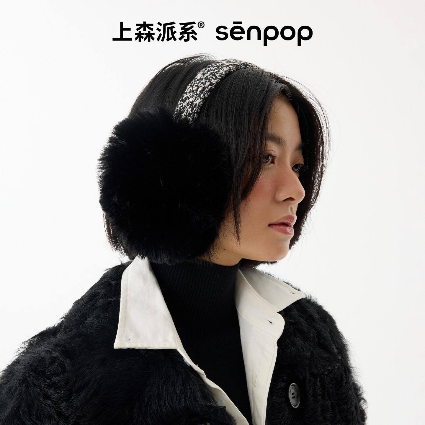 天猫上森白色羊毛耳罩女秋冬韩系毛绒护耳保暖耳包毛茸茸耳捂子senpop