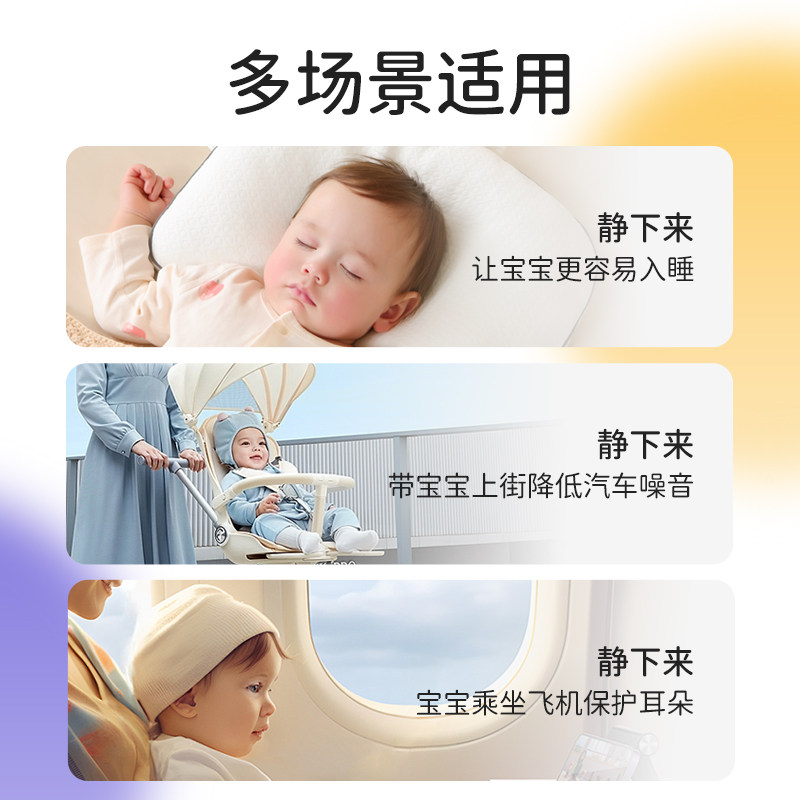 专为0-3岁宝宝设计的婴儿隔音耳罩,采用柔软亲肤材质,安全无毒,佩戴舒适。头戴式可调节设计,适配不同头围,稳固不勒头。有效降低环境噪音达22-32分贝,适用于飞机出行、施工噪音、鞭炮声等高分贝场景,帮助宝宝安然入睡、缓解压力。轻量化结构避免压迫耳部,耳罩内部填充高弹性海绵,贴合耳廓又不夹头。通过国际安全认证,无小零件脱落风险,家长更放心。无论是日常出行还是特殊场合,这款降噪耳机都是守护宝宝安静睡眠的理想选择,让宝宝在嘈杂世界中拥有一片宁静天地。