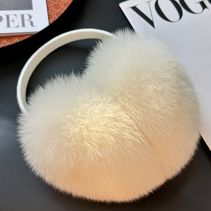 淘宝奶油色可爱超大狐狸毛耳捂可伸缩加厚保暖耳罩秋冬女毛绒耳套耳暖