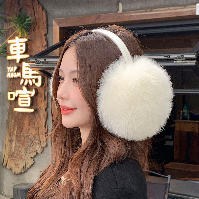 淘可爱真獭兔毛耳罩女冬季百搭保暖毛绒耳包骑车防风耳暖耳捂可伸缩