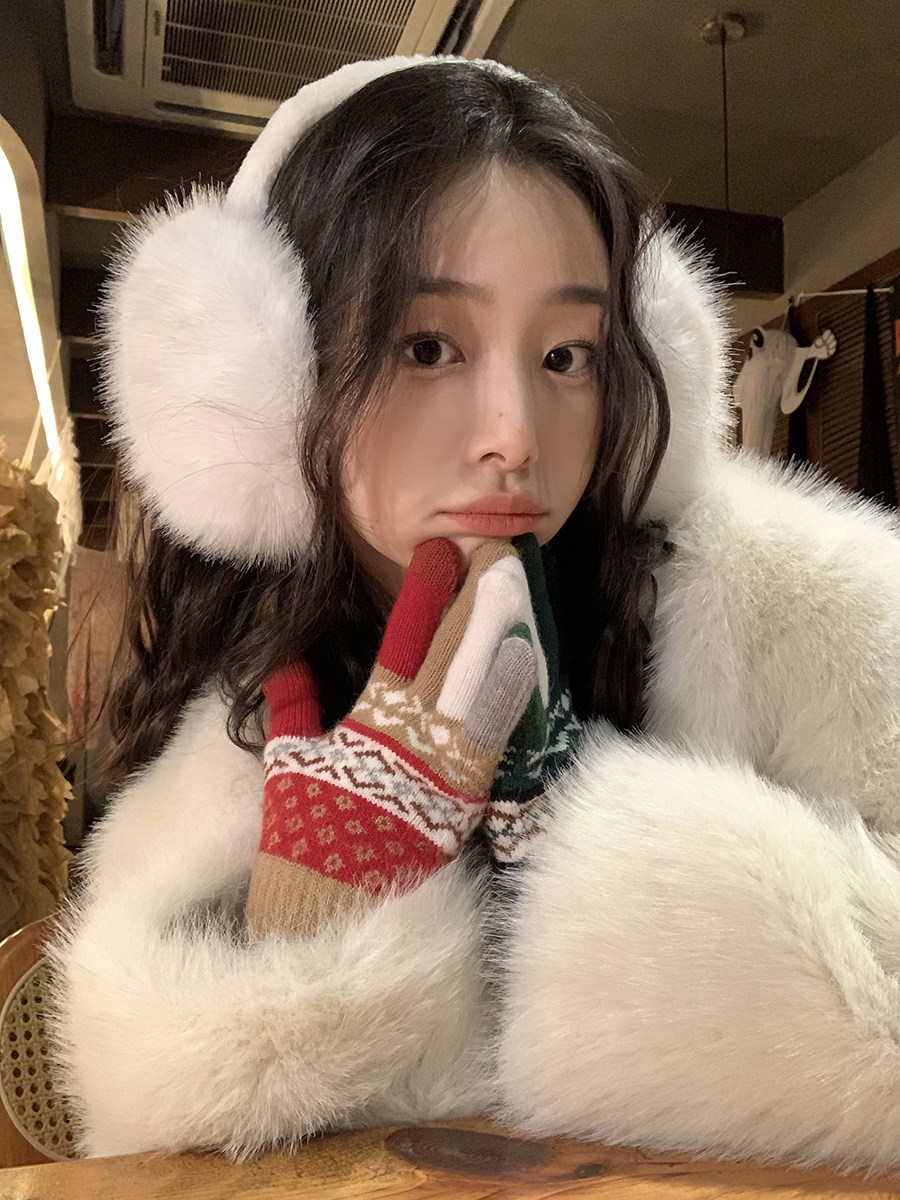 巴恩风~陈奶奶复古系混色毛球耳罩护耳可爱韩版ins加厚防寒保暖女